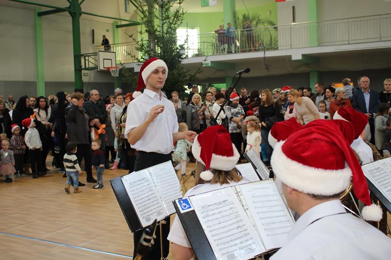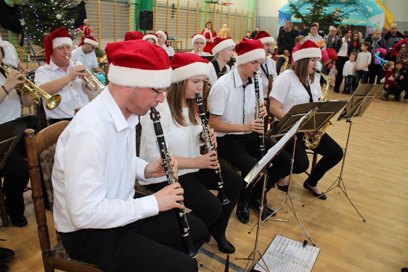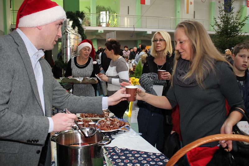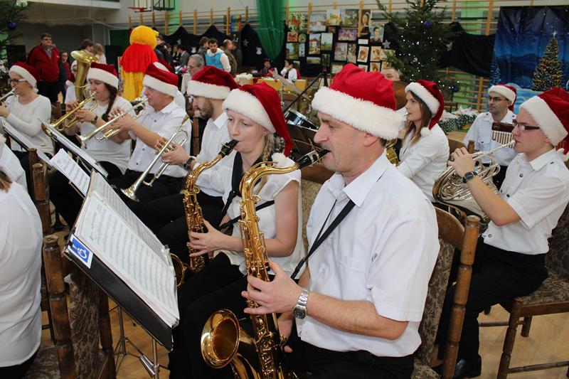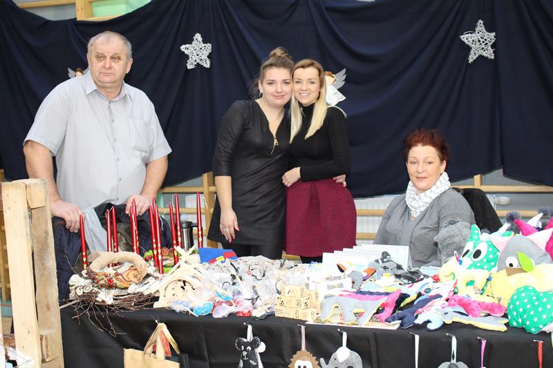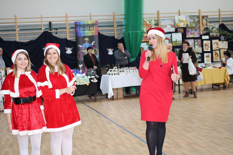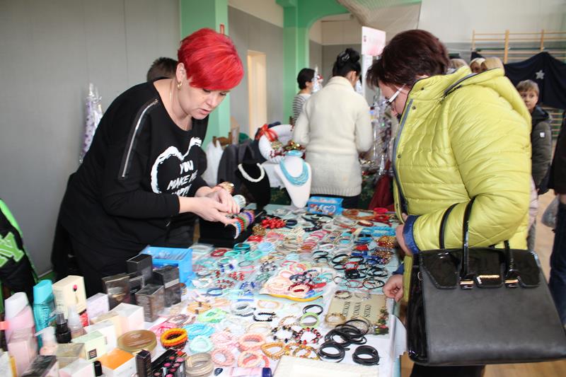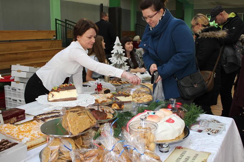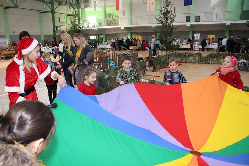 Świąteczna impreza odbyła się w sali widowiskowo-sportowej. Przestronny obiekt spełnił nasze oczekiwania. W tym samym miejscu i w tym samym czasie przeprowadziliśmy zarówno kiermasz handlowy, jak i wesołą zabawę dla najmłodszych. Dorośli mogli wybierać prezenty dla najbliższych i szukać prostych dekoracji, by ich dom stał się przytulny i radosny na święta. Pomysłów i inspiracji było mnóstwo. Od papierowych choinek, artystycznych bombek czy gipsowych aniołków, po kubki ręcznie malowane, cuda z pszczelej pasieki, ubrania i biżuterię. Słowem – dla każdego coś fajnego. Nie sposób wszystkiego wymienić. Wystawcy zaoferowali przedmioty z duszą. Niektórzy dostali się do naszych serc przez żołądek serwując swoje kulinarne specjały. A jeszcze inni nakłonili nas do okazywania serca i wsparcia potrzebujących. Chyba wszyscy poczuliśmy magię nadchodzących świąt, podkreśloną muzycznym akcentem orkiestry i uczestniczek zajęć wokalnych.