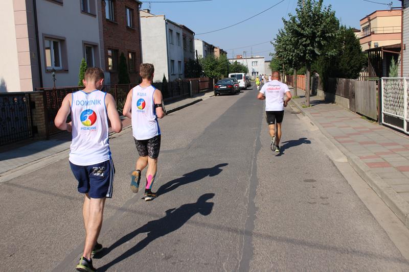 Na starcie pojawiło się 315 zawodników. Najpierw wzięli udział w biegu honorowym, od muralu do rynku. To tak w ramach rozgrzewki i promocji niebanalnej reklamy miasta. Potem przystąpili do biegu głównego. Pokonanie 10 kilometrowej trasy nie było łatwe, z uwagi na lejący się z nieba żar. Temperaturę łagodzili więc strażacy, podając biegaczom wodę do picia i zraszając ich wodną kurtyną. Zawodnicy wykazali się wielką determinacją, przestrzegając przy tym zasad fair-play. Wspierali się wzajemnie, tak by wszyscy mogli przekroczyć linię mety. Niestety czterem osobom się to nie udało.