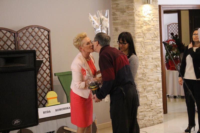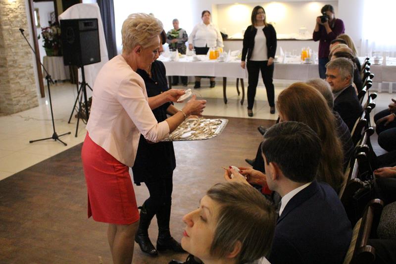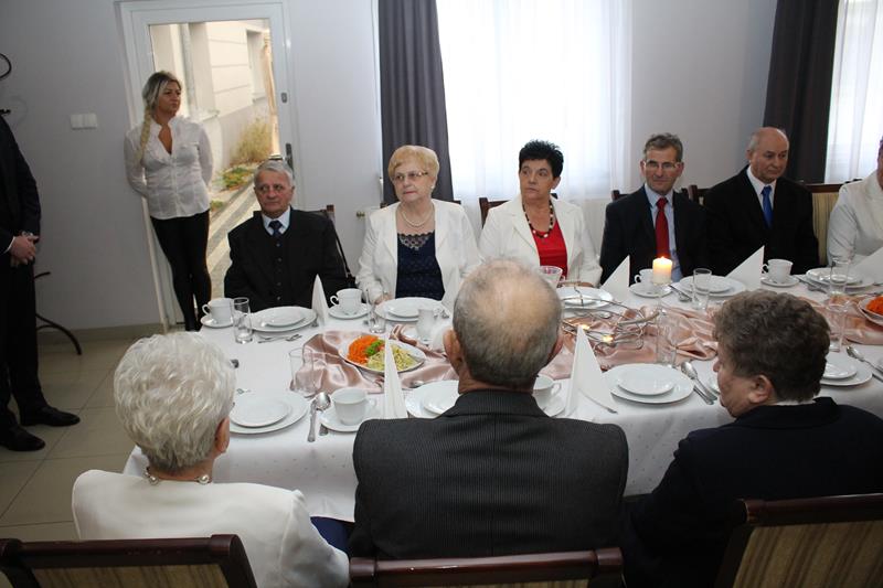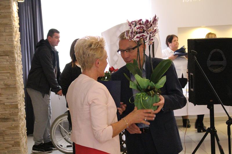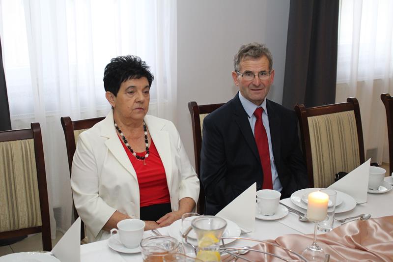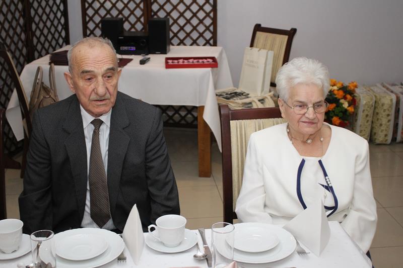 Jubilaci otrzymali listy gratulacyjne, kwiaty i upominki, a lampką szampana wzniesiono toast za ich zdrowie.