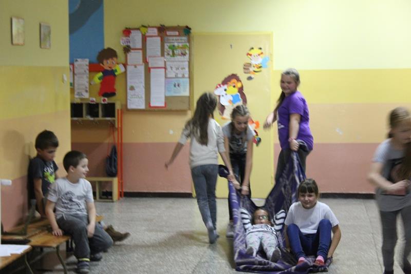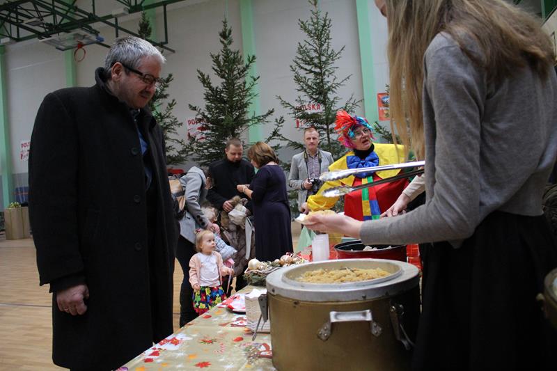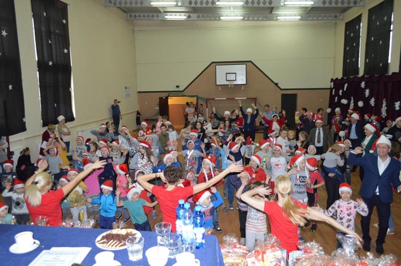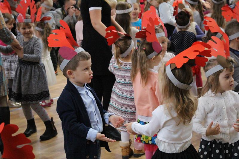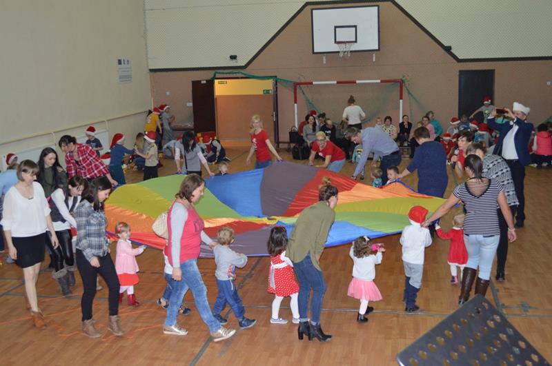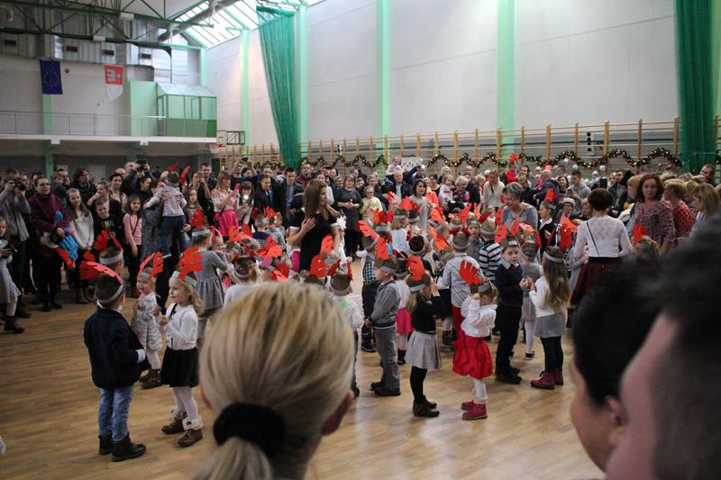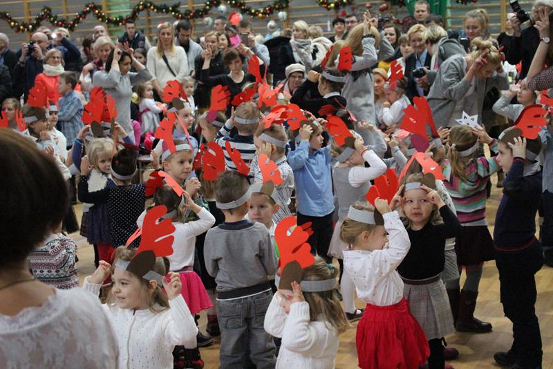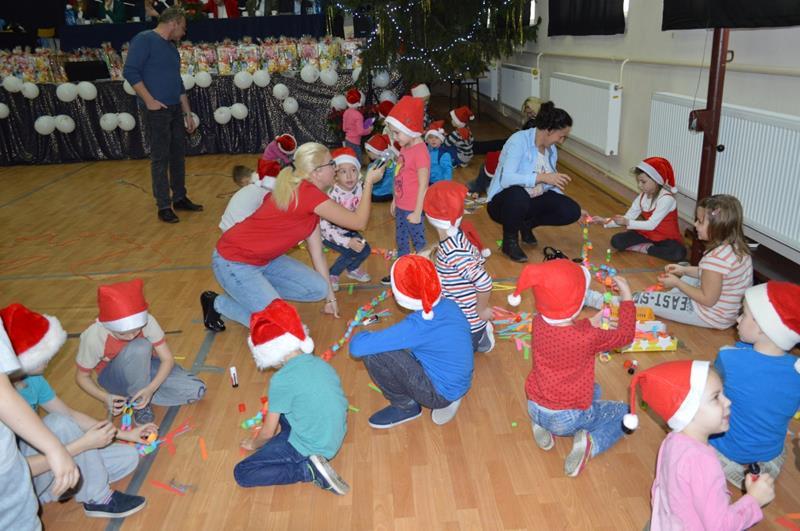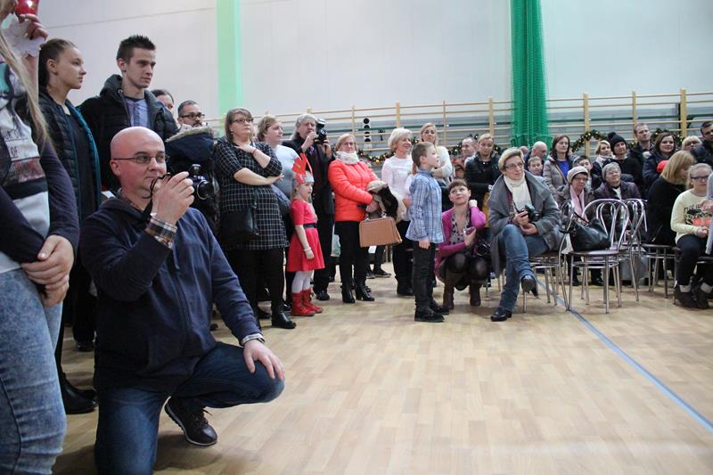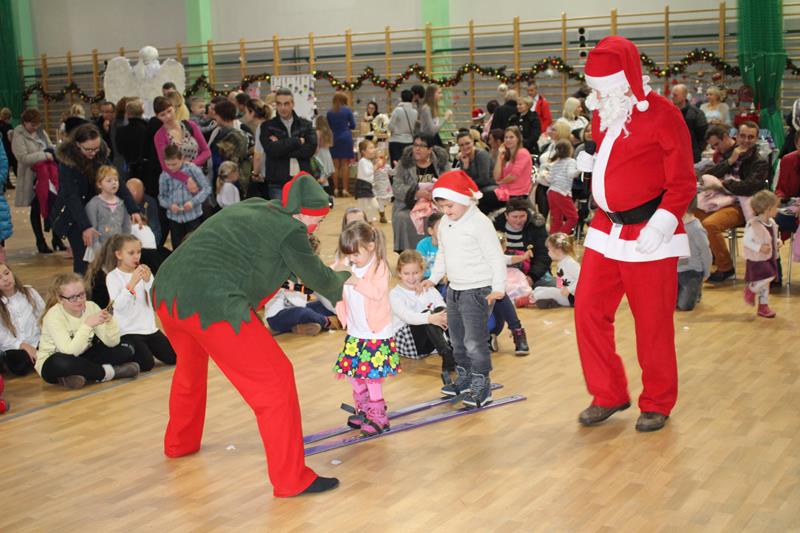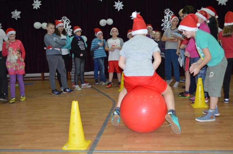 Przeprowadzono konkurencje sportowe dla wszystkich wychowanków i uczniów Zespołu Szkolno-Przedszkolnego. Grupa „Maluszki” i klasa „0” – spacer na linie i tunel, klasy I-III bieg z bombką na łyżce i sadzenie ziemniaków, klasy IV-VI sztafeta z butami, skoki na piłce, gimnazjum sztafeta wiąż-rozwiąż – prowadzenie piłki unihokeja między piłkami lekarskimi, Po konkurencjach sportowych klasy pracowały w grupach i tworzyły ozdoby bożonarodzeniowe: maluszki – papierowe bombki na choinkę klasy 0-III łańcuch z kolorowych pasków papieru, klasy I-VI sople z papieru, natomiast gimnazjum łańcuch . Za zmagania sportowe i plastyczne uczestnicy otrzymali pamiątkowe medale. Zorganizowano także zabawy ruchowe dla najmłodszych mieszkańców wsi i ich rodziców, zmagania sportowe z udziałem zaproszonych gości. Kolejnym punktem imprezy była mikołajkowa zumba dla wszystkich. Po wspólnym tańcu przyszedł czas na paczki od Świętego Mikołaja. Na koniec wspólnie odśpiewano kolędę. Impreza „Integracja na sportowo i świątecznie zakończyła się w sobotę spektaklem bożonarodzeniowym „ Koś pukał..”