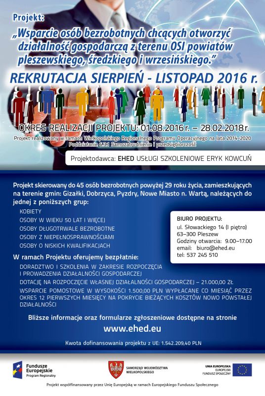 Projekt skierowany jest do bezrobotnych lub biernych zawodowo kobiet w wieku 30+, zamierzających otworzyć działalność gospodarczą.