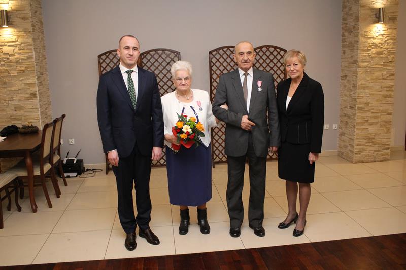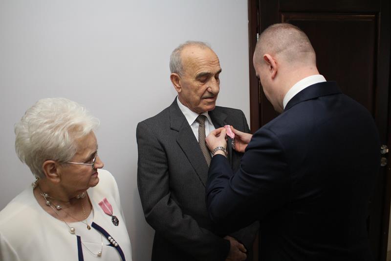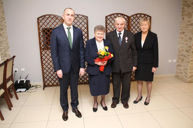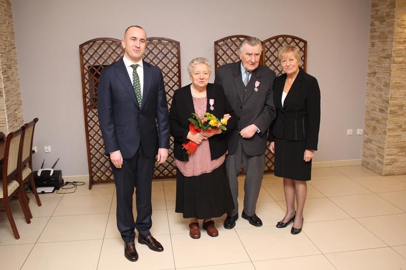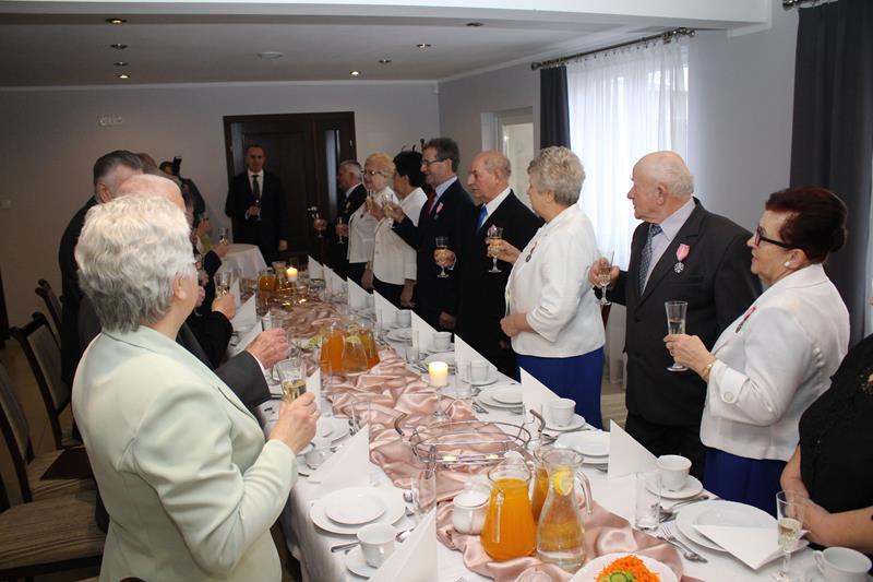 Długoletnie pożycie małżeńskie jubilatów zostało docenione przez Prezydenta RP. W jego imieniu okolicznościowe medale wręczył Przemysław Dębski, burmistrz Pyzdr, składając serdeczne gratulacje i najlepsze życzenia.