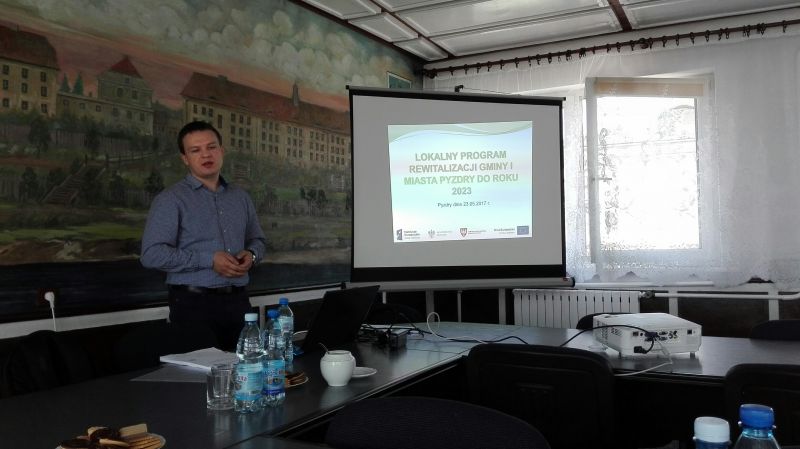 Warsztaty rewitalizacyjne w ramach opracowania Lokalnego Programu Rewitalizacji dla Gminy i Miasta Pyzdry do roku 2023 odbyły się 15 lutego 2017 r. w Urzędzie Miejskiego w Pyzdrach. W warsztatach udział wzięli sołtysi i radni z terenu gminy Pyzdry oraz przedstawiciele instytucji kultury i pomocy społecznej, którzy wspólnie z przedstawicielem firmy Green Key podzieleni na grupy wyznaczali obszary zdegradowane. Na spotkaniu wypełniono także ankietę. Podczas warsztatów przybliżona została tematyka rewitalizacji i możliwości działań na rzecz rozwoju gminy.