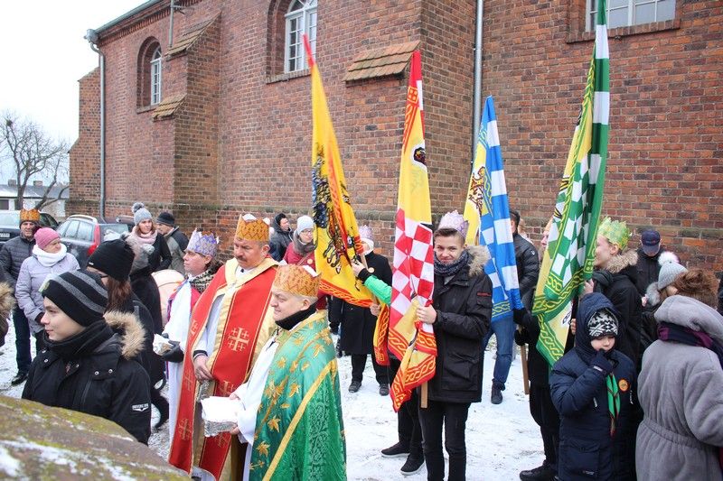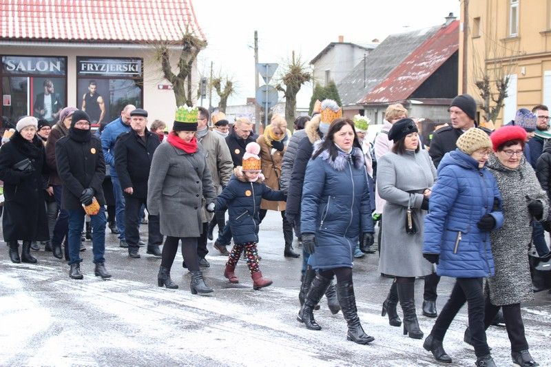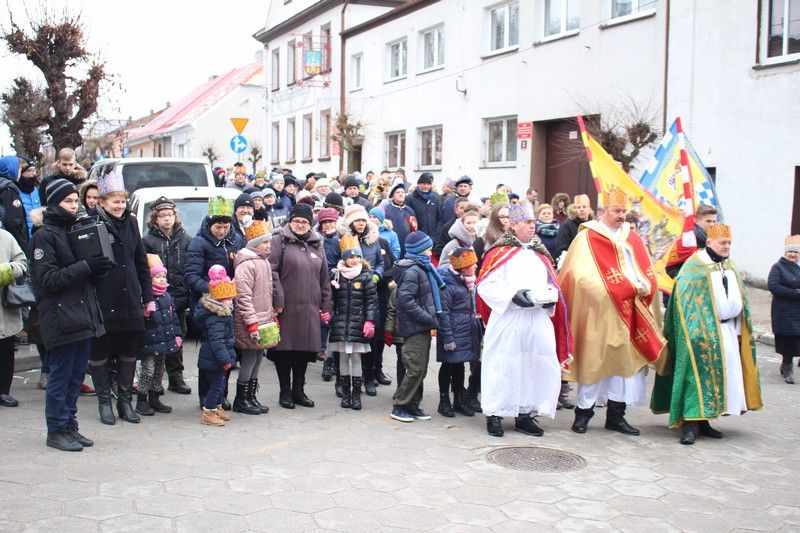 Tegoroczny, piąty, orszak Trzech Króli miał swój początek pod kościołem farnym. Tuż po południowej Mszy Świętej uczestnicy orszaku wyruszyli na Rynek Miejski, aby z Trzema Królami oddać pokłon Świętej Rodzinie.
