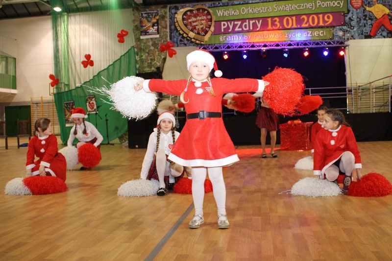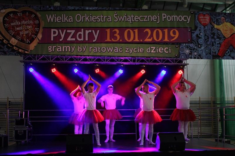 Na program artystyczny, który odbywał się w sali widowiskowo-sportowej złożyły się nie tylko występy lokalnych artystów tj. Pyzdrska Orkiestra Dęta, mażoretki, uczennice z pyzdrskiego gimnazjum, czy druhowie z OSP Pietrzyków, ale i również duet wokalny Ani i Zuzi z Kaczanowa, taniec baletowy Hanny Wabich z Wrzesińskiego Alchemia Dance Studio i sztuka iluzji Magika Markusa. Każdy z występów przeplatany był licytacjami ponad stu gadżetów: rower miejski podarowany przez sklep Oskar AGD RTV sprzedano za 470,00, budzik kwarcowy z Fundacji uzyskał kwotę 350,00 zł, podobnie jak voucher na wywrotkę żwiru od Sortowni Żwiru Państwa Szymańskich, czy voucher na płytę zespołu „Piersi”, który będzie gwiazdą tegorocznych „Wystrzałowych Pyzdr”. Łącznie z licytacji uzyskano kwotę 8.985 zł.