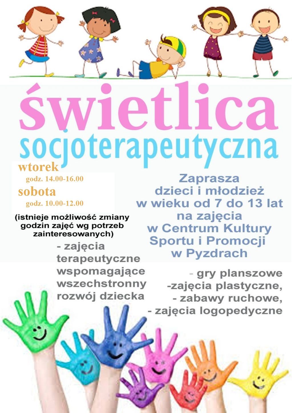 Zapraszamy wszystkie dzieciaki z gminy Pyzdry na zajęcia do Centrum Kultury Sportu i Promocji. Zapewniamy ciekawe warsztaty, gry i zabawy, a w nagrodę za czynny udział pojedziemy do JumpWorld'u we Wrześni. Zaczynamy od wtorku 15 stycznia od godz. 10.00.