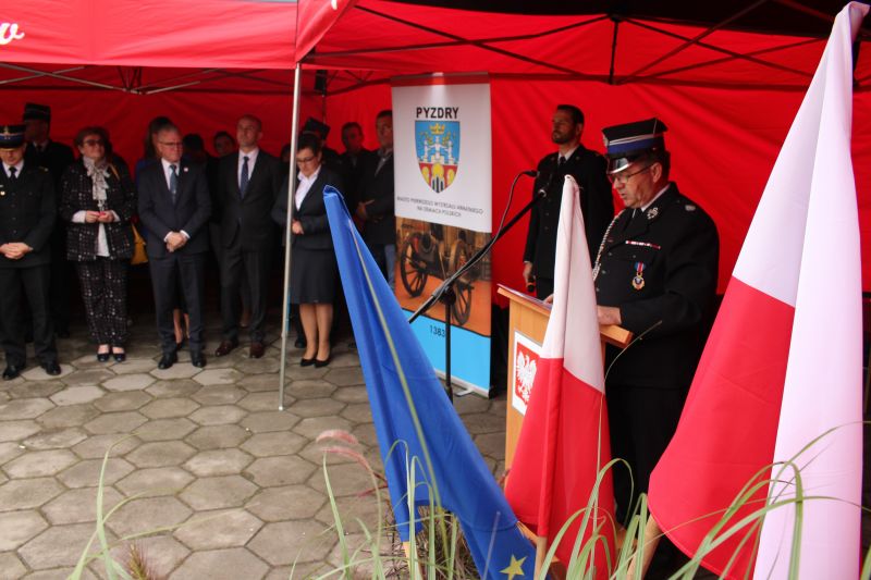 W uroczystości przekazania wzięli udział strażacy i samorządowcy. Podziękowania za wsparcie od Burmistrza Pyzdr otrzymali: Senator RP Robert Gawła, Wojewoda Wielkopolski Zbigniew Hoffmann, Wielkopolski Komendant Państwowej Straży Pożarnej w Poznaniu Andrzej Bartkowiak, Prezes Zarządu WFOŚiGW w Poznaniu Jolanta Ratajczak i Komendant Powiatowy Państwowej Straży Pożarnej we Wrześni Piotr Trawiński.