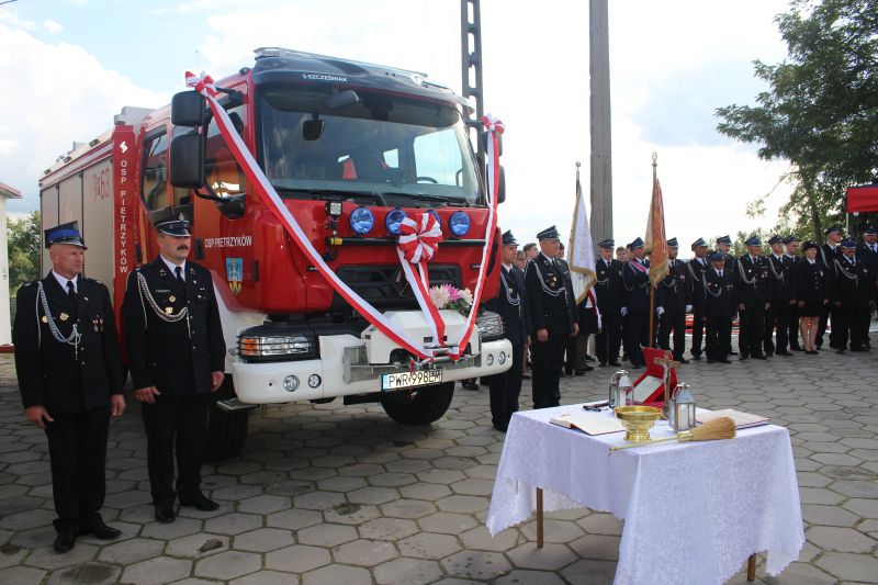 Na placu Ochotniczej Straży Pożarnej w Pietrzykowie po raz kolejny została zorganizowana wyjątkowa zbiórka. Poświęcono nowy samochód ratowniczo-gaśniczy, a mieszkańcom składano podziękowanie za pomoc w jego pozyskaniu.