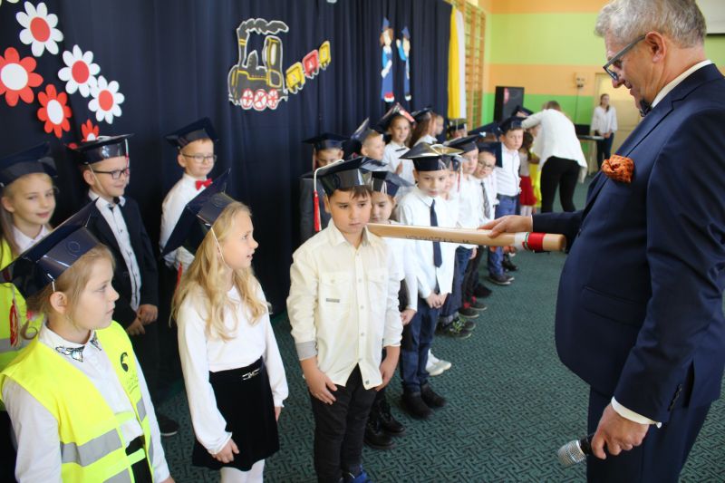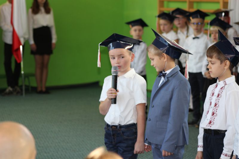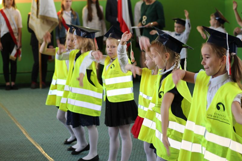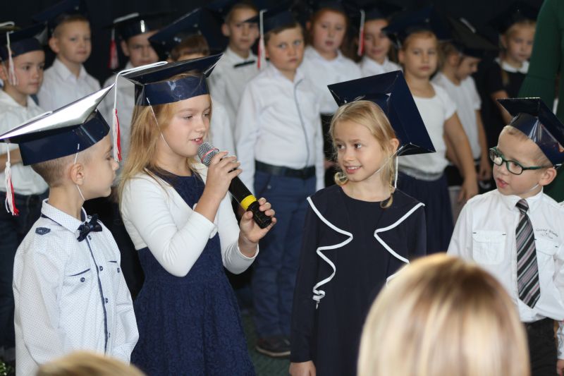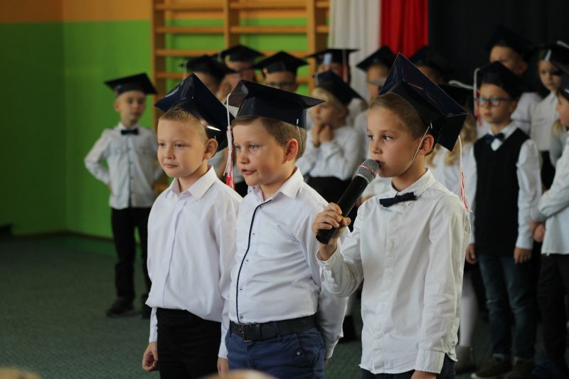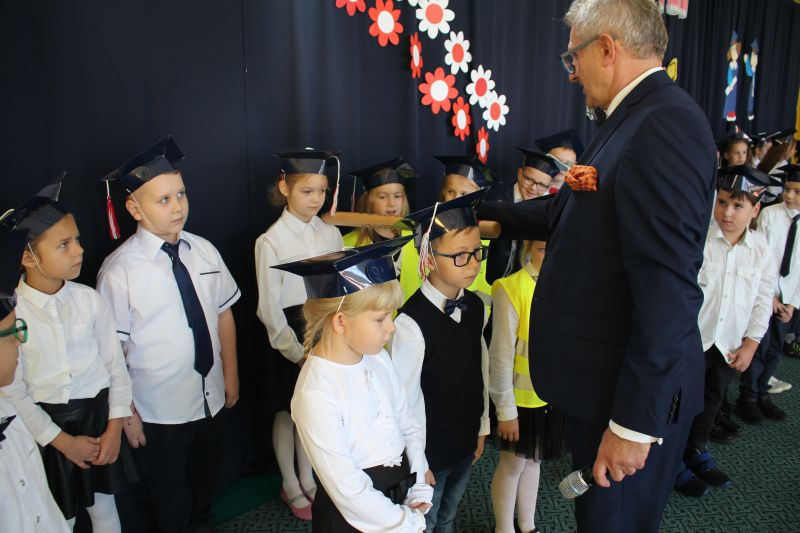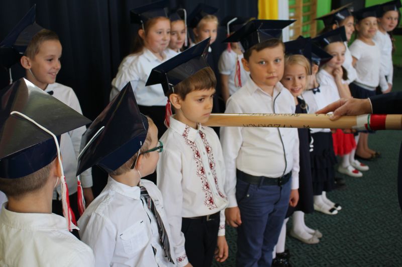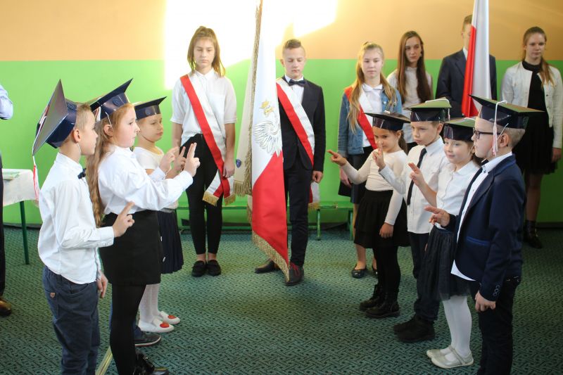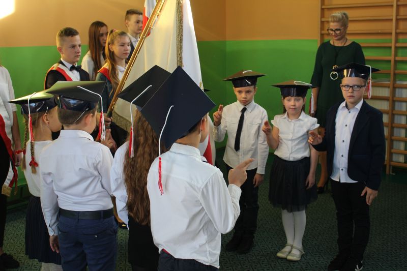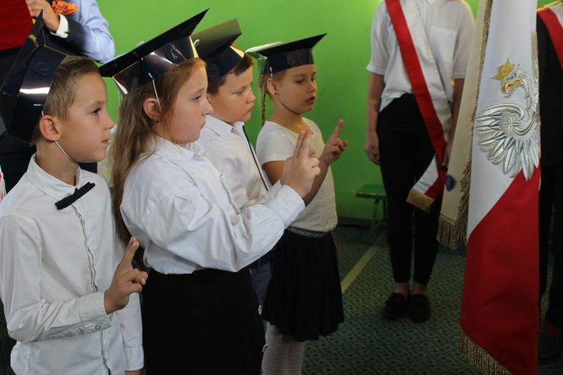 W niezwykle podniosłej atmosferze, przed pocztem sztandarowym, pierwszacy ślubowali być dobrymi uczniami i Polakami, a swym zachowaniem i nauką sprawiać radość rodzicom i nauczycielom. Dyrektor szkoły dokonał pasowania symbolicznym ołówkiem.