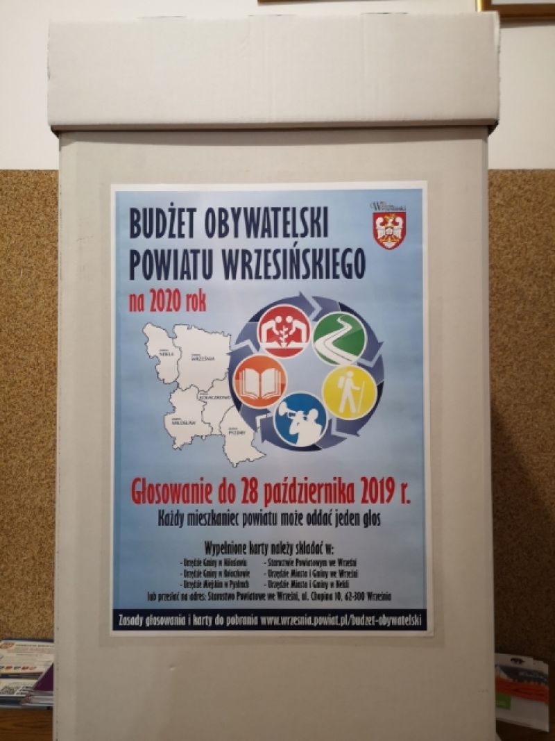 Mieszkańcy Gminy i Miasta Pyzdry mogą do 28 października oddać swój głos na jedno z zadań, które będzie realizowane w 2020 r. w ramach budżetu obywatelskiego Powiatu Wrzesińskiego. Zachęcamy do udziału w głosowaniu. To od Was zależy, czy zaproponowane zadania będą realizowane.