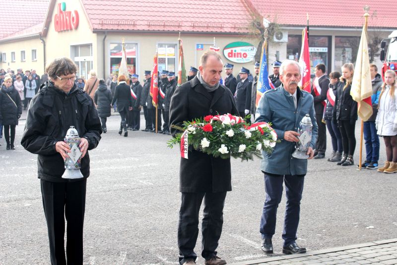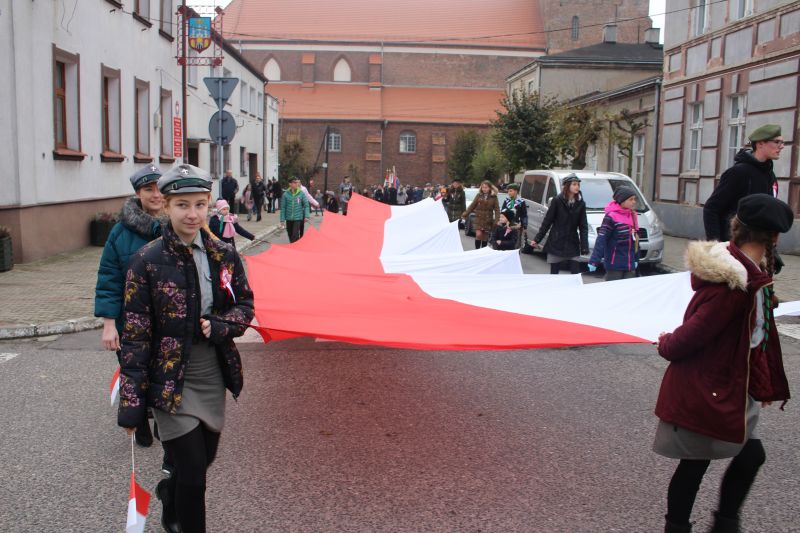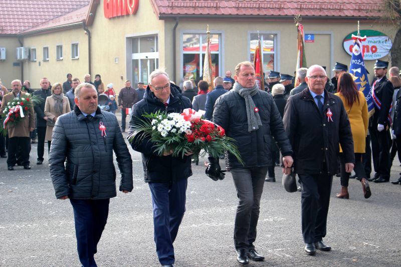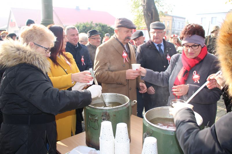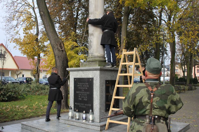 Zaczęło się od mszy świętej, odprawionej w intencji Ojczyzny przez księdza proboszcza Ryszarda Kopczyńskiego. Duchowny skierował do wiernych ważne słowa, za które później otrzymał gromkie brawa. Potem wszyscy w barwnym korowodzie przeszli na rynek. Stali się świadkami rekonstrukcji wydarzeń sprzed laty – zburzenia pomnika Polskiej Organizacji Wojskowej. To właśnie 17 października 1939 r. hitlerowcy doprowadzili do zniszczenia monumentu. Peowiakom udało się jednak ocalić akt erekcyjny, który ukradkiem wyjęli, podzielili między siebie i … zjedli.