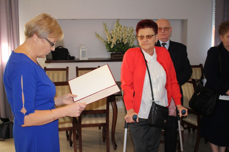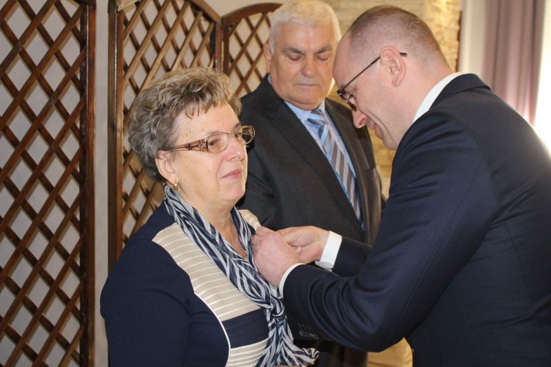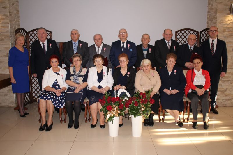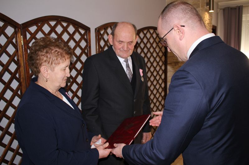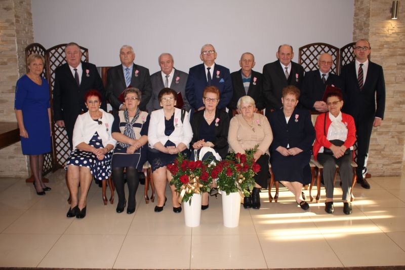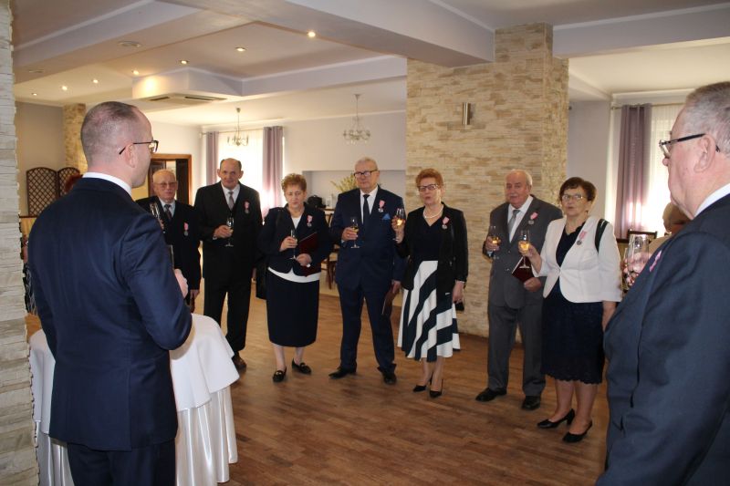Dostojni jubilaci pamiątkowymi medalami, przyznanymi przez Prezydenta RP, byli dekorowani przez burmistrza Pyzdr Przemysława Dębskiego, który składał im jednocześnie gratulacje i życzenia. Lampką szampana wzniesiono toast za zdrowie i pomyślność na dalsze lata małżeństwa.