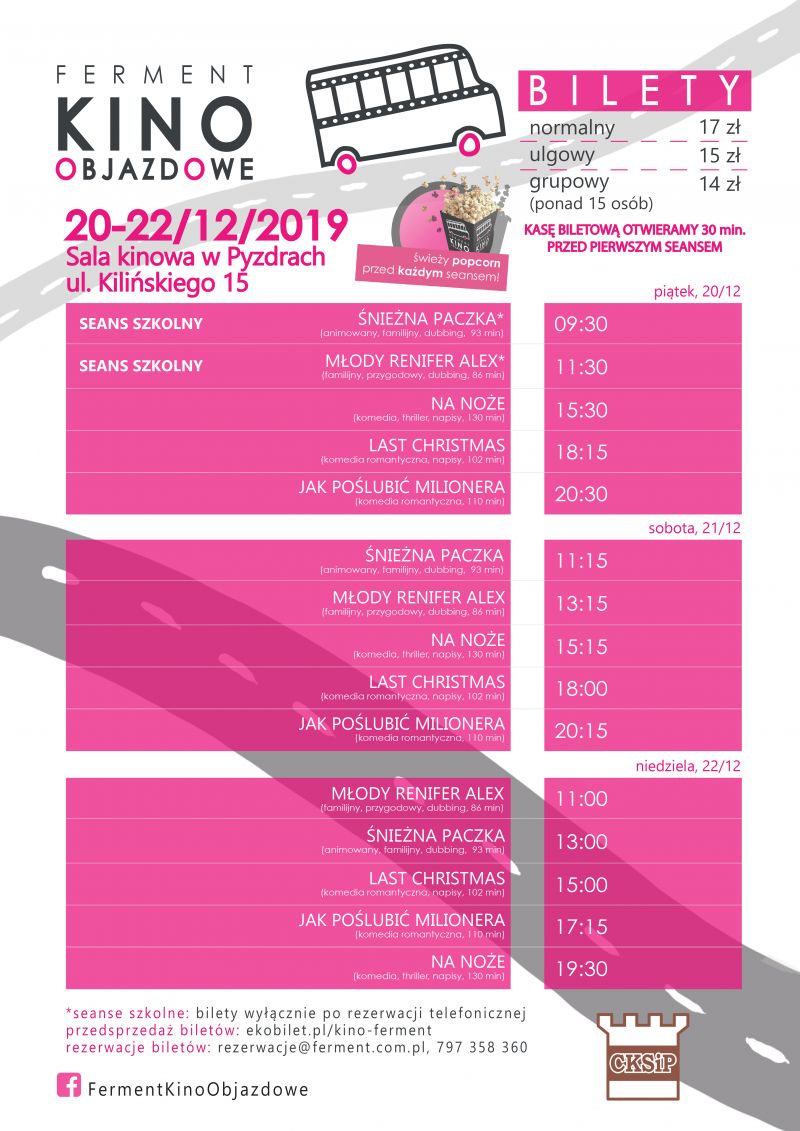 Mamy dla Was propozycje na grudniowy weekend. Dzięki współpracy z Ferment Kino Objazdowe zapraszamy na premierowe seanse filmowe. W załączeniu prezentujemy świąteczny repertuar.