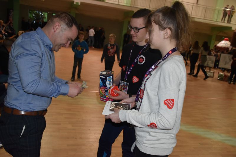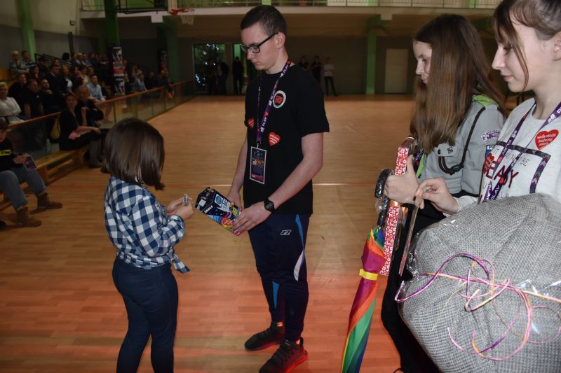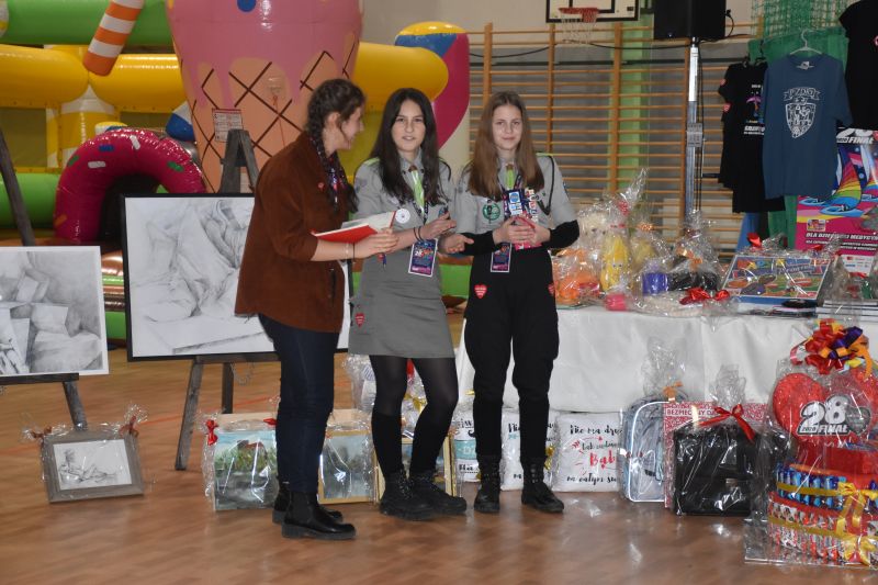 Niezwykłe emocje panowały w czasie licytacji. Kwota 10 tys. 337 zł uzyskana ze sprzedaży gadżetów to wielka sprawa. Najwyższe kwoty uzyskały: koszulka Lecha Poznań i kurtka zespołu Zouzy (gwiazdy tegorocznej Nocy Świętojańskiej) – 650 zł, serce ze słodyczy – 600 zł, tort – 500 zł, koszulka Macieja Makuszewskiego - 400 zł i 350 zł oraz koszulka PGE Vive Kielce - 400 zł. Zainteresowaniem cieszyły się też obrazy Joanny Frontczak, a także gadżety z logo WOŚP i te związane z naszym miastem. Pod młotek poszła też płyta zespołu Wilki, który uświetni lipcowe Wystrzałowe Pyzdry.