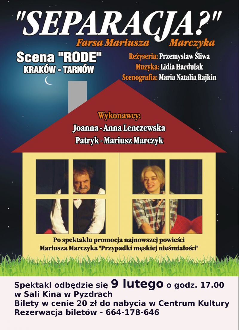 Serdecznie zapraszamy na spektakl - ,,Separacja'' – farsa małżeńska. Jest to przezabawna historia pary, która po latach przeżywa kryzys...