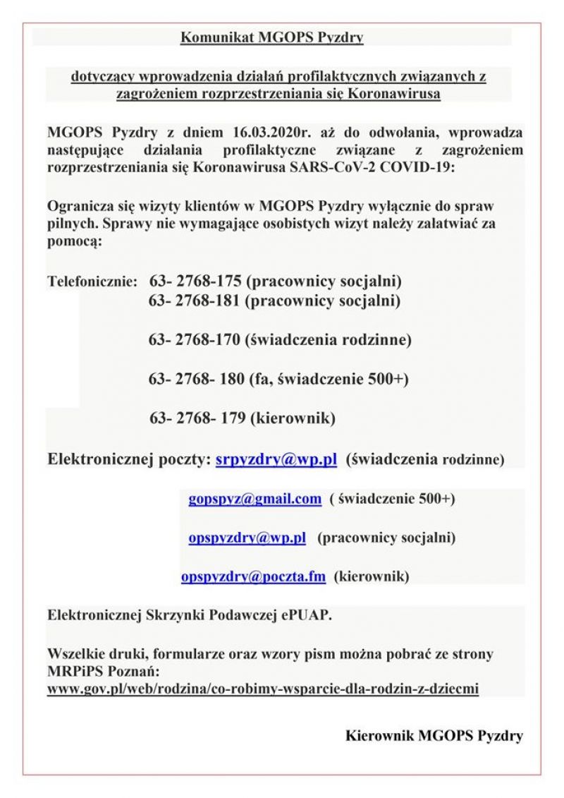 Podajemy również do ogólnej wiadomości, iż od stycznia br. z Punktem Konsultacyjnym można kontaktować się telefonicznie pod numerem 516 409 212.