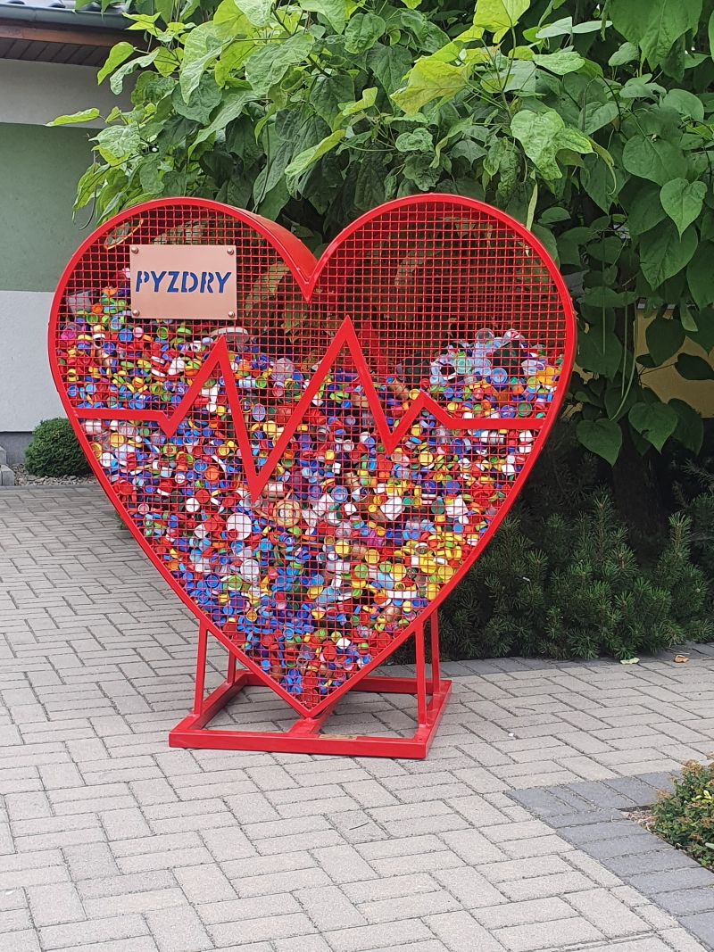 Wrzucajcie nakrętki (nie ma znaczenia wielkość i kolor) do serca, które stoi przy Przedszkolu ,,Bajkowy Świat'' w Pyzdrach! Potrzebna jest każda ilość!
