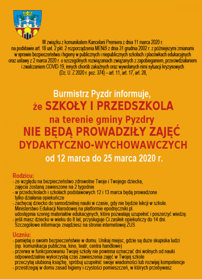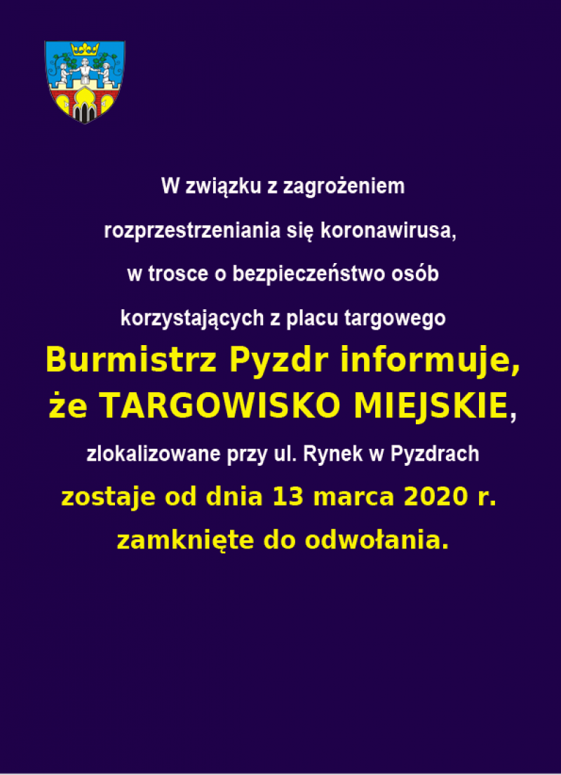 Burmistrz Pyzdr informuje, że kwalifikacja wojskowa dla mężczyzn rocznik 2001 oraz mężczyzn urodzonych w latach 1996–2000, którzy nie posiadają określonej kategorii zdolności do czynnej służby wojskowej z terenu gminy Pyzdry odbędzie się w dniach od 11 do 12 lutego 2020 r., natomiast dla kobiet urodzonych w latach 1996 - 2001 dnia 27 lutego 2020 r.