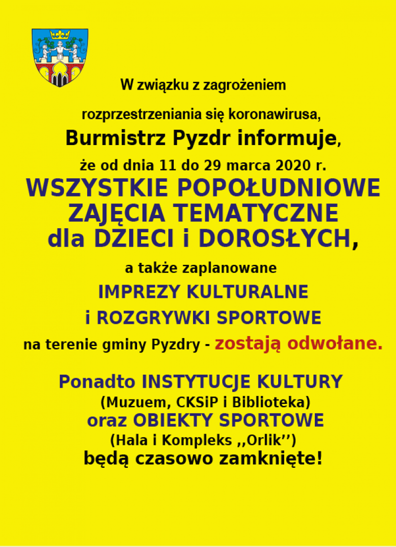 Burmistrz Pyzdr ogłosił otwarte konkursy ofert na powierzenie realizacji zadań publicznych Gminy i Miasta Pyzdry. Szczegóły w załączeniu.