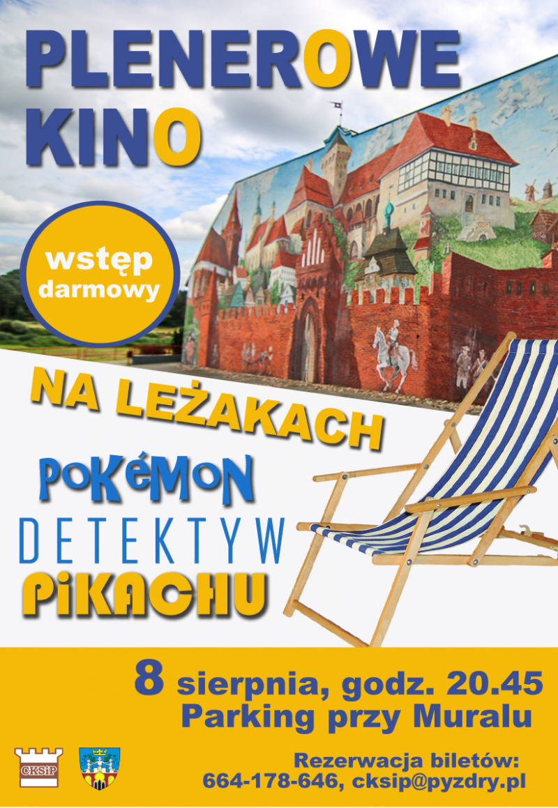 8 sierpnia wyświetlimy familijny film Pokemon Detektyw Pikaczu. Bezpłatne wejściówki dla dzieci i rodziców w ilości 150 sztuk wydawane będą od poniedziałku w Centrum Kultury (rezerwacja tel. 664-178-646).
