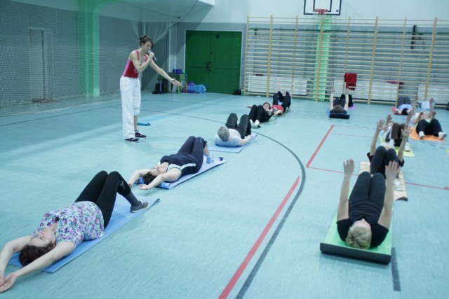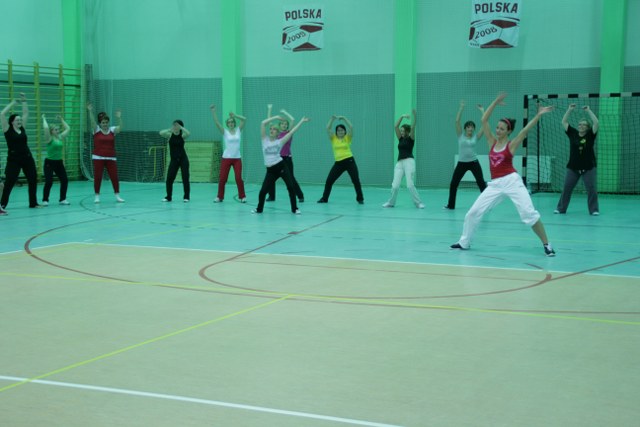 Generalnie na zajęcia fitness może przyjść każda kobieta, niezależnie od wieku i sprawności fizycznej. I tak zajęcia składają się z dwóch części. Pierwsza to fitness rehabilitacyjny (godz. 17.00) skierowany dla Pań cierpiących na bóle kręgosłupa, cukrzycę, choroby stawów, reumatyzm i zwyrodnienia, osteoporozę, choroby układu krążenia i nadwagę. Druga część to zumba (godz. 18.00). Jest to zainspirowana latynoskimi rytmami fuzja tańca i aerobiku. Kształtuje ona sylwetkę, dba o kondycję i wprawia w świetne samopoczucie. Zróżnicowane kombinacje ruchów i motywująca muzyka stanowią sposób na efektywny trening.