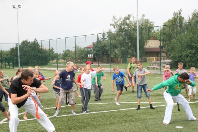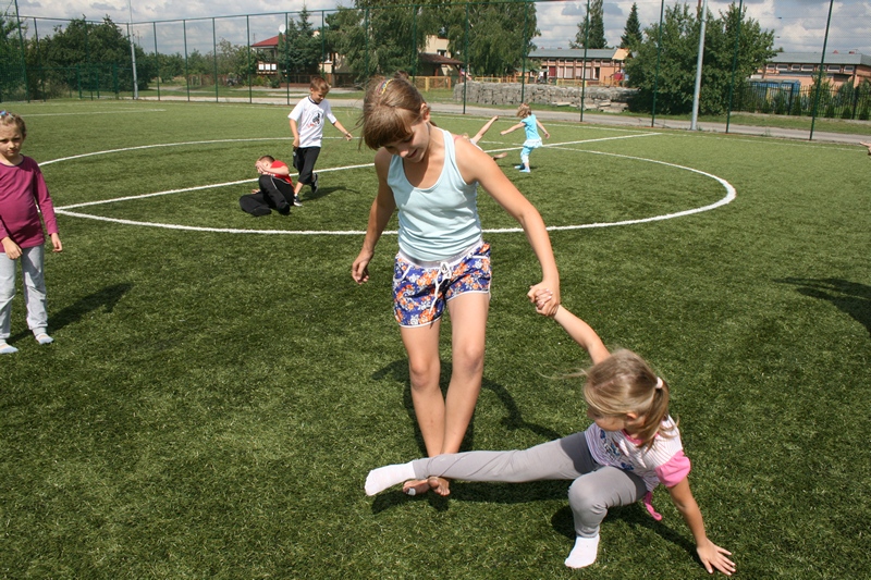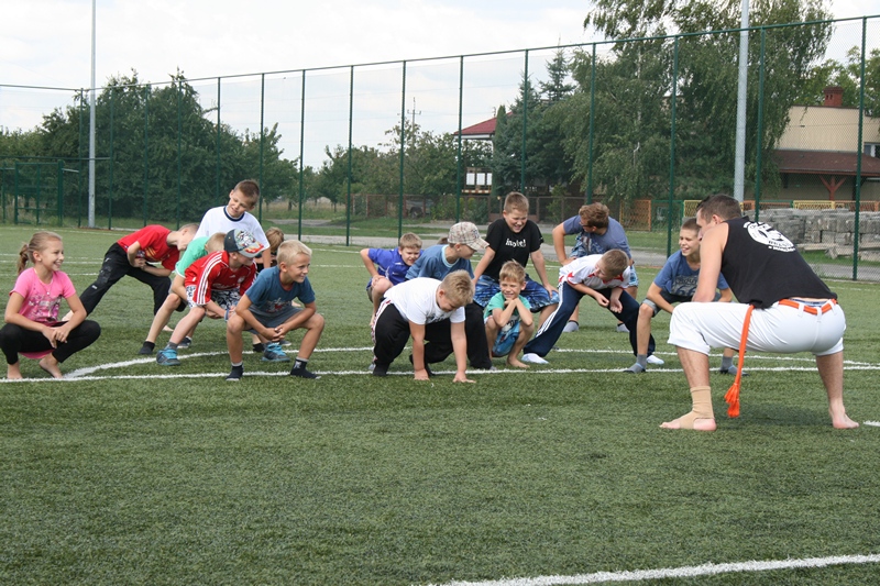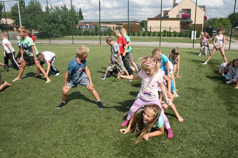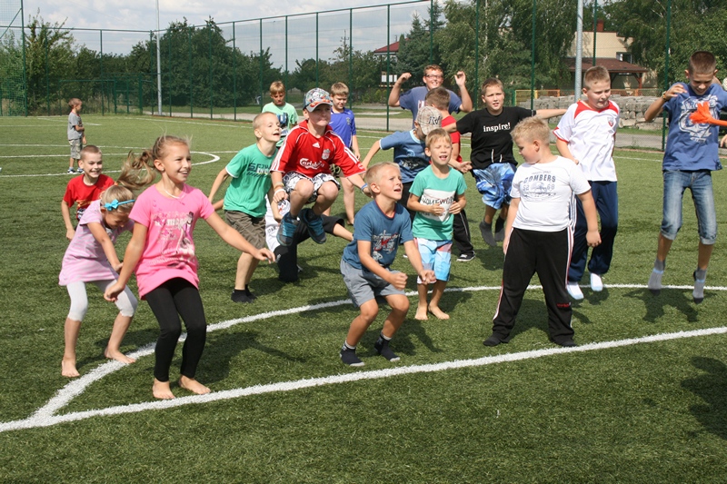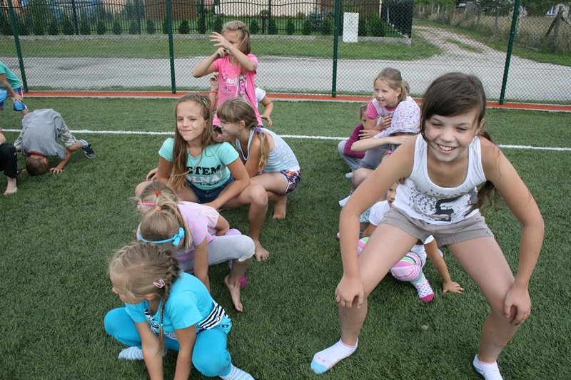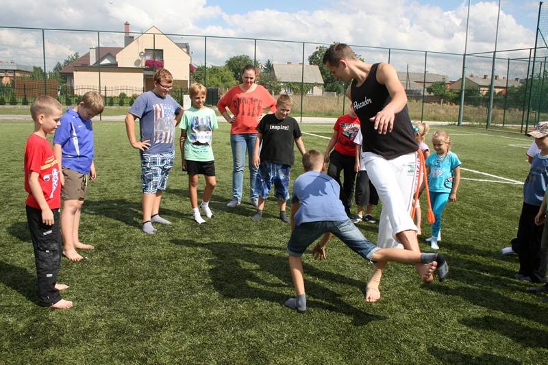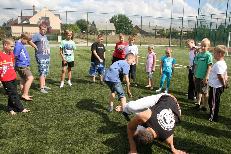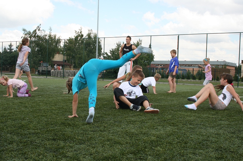 Przypomnijmy, iż wraz z zakończeniem roku szkolnego rozpoczęły się warsztaty taneczne i zajęcia plastyczne. Uzdolnieni wokalnie mogli zmagać się z ulubionymi piosenkami w karaoke, a mali sportowcy brali udział w konkurencjach przygotowanych przez animatorów na „Orliku”. Odbyła się również mini sesja fotograficzna, przy której była cała masa świetnej zabawy. Nagrodą za udział w zajęciach były wycieczki: na basen, do Parku Dinozaurów, kina czy Fabryki Wrażeń. Sierpień w niczym nie ustępował swojemu poprzednikowi. Odbywały się zajęcia modelarskie, gdzie dzieciaki robiły latawce, plastyczne czy capoeira. Te ostatnie cieszyły się największym zainteresowaniem wśród chłopców, gdyż polegały na nauce sztuki walki. I znów nagroda w postaci wycieczek na basen, do parku linowego i kina, a po seansie wizyta w Urzędzie Skarbowym we Wrześni.