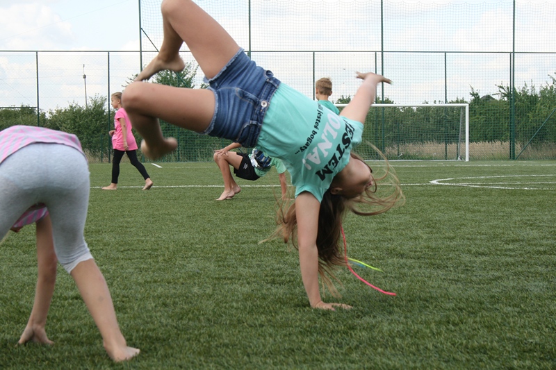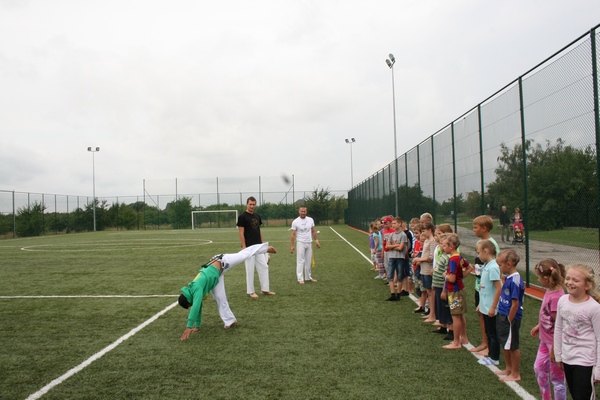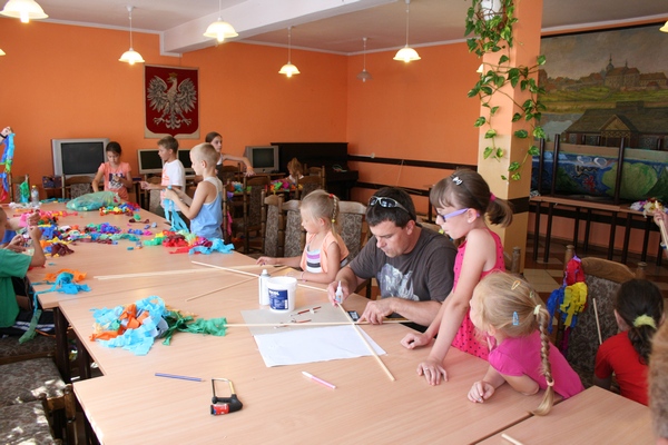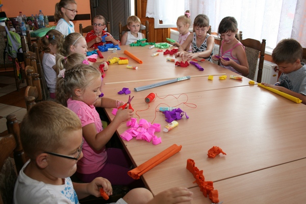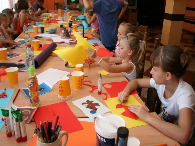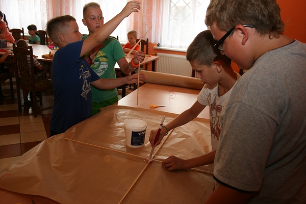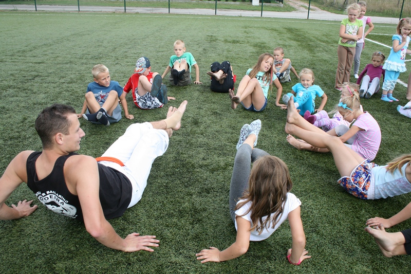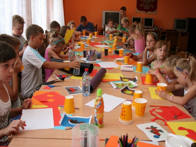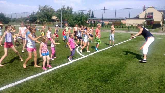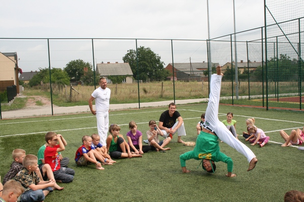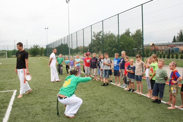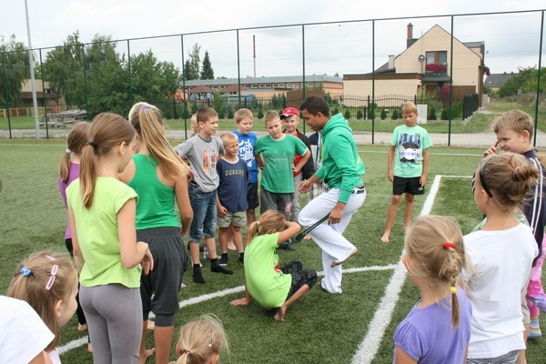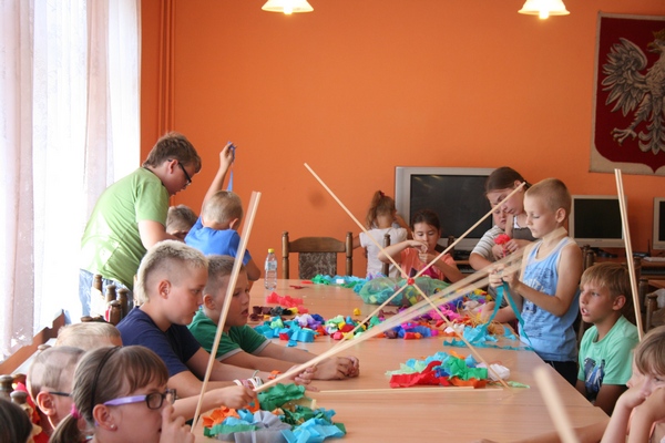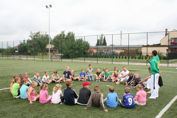 Przypomnijmy, iż wraz z zakończeniem roku szkolnego rozpoczęły się warsztaty taneczne i zajęcia plastyczne. Uzdolnieni wokalnie mogli zmagać się z ulubionymi piosenkami w karaoke, a mali sportowcy brali udział w konkurencjach przygotowanych przez animatorów na „Orliku”. Odbyła się również mini sesja fotograficzna, przy której była cała masa świetnej zabawy. Nagrodą za udział w zajęciach były wycieczki: na basen, do Parku Dinozaurów, kina czy Fabryki Wrażeń. Sierpień w niczym nie ustępował swojemu poprzednikowi. Odbywały się zajęcia modelarskie, gdzie dzieciaki robiły latawce, plastyczne czy capoeira. Te ostatnie cieszyły się największym zainteresowaniem wśród chłopców, gdyż polegały na nauce sztuki walki. I znów nagroda w postaci wycieczek na basen, do parku linowego i kina, a po seansie wizyta w Urzędzie Skarbowym we Wrześni.