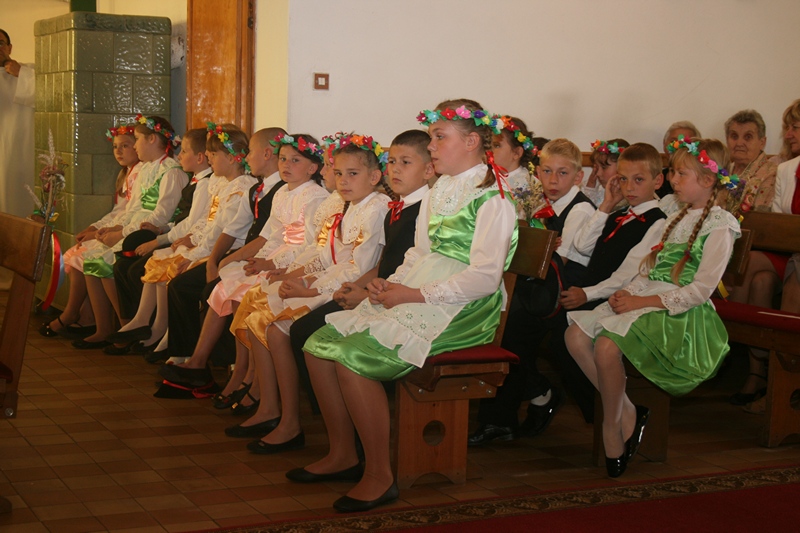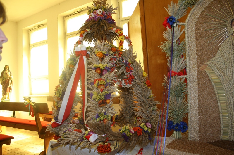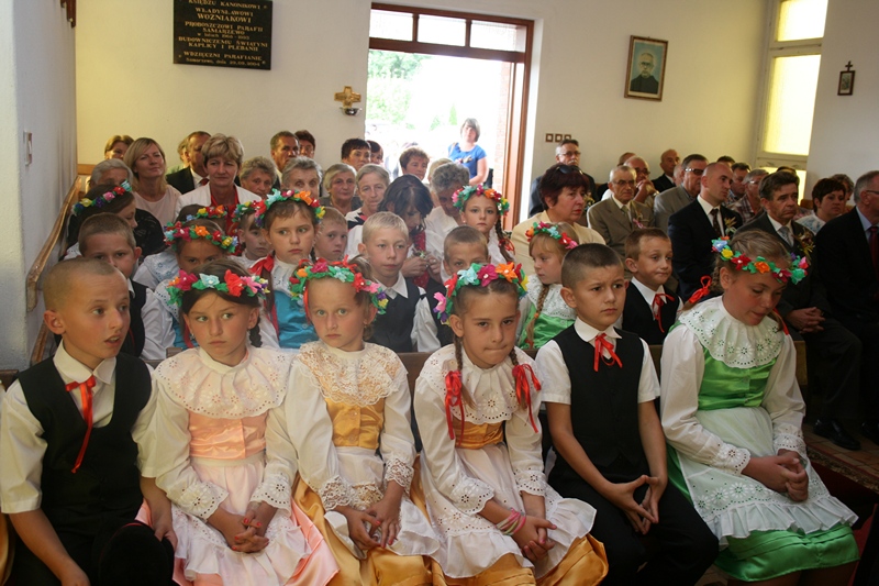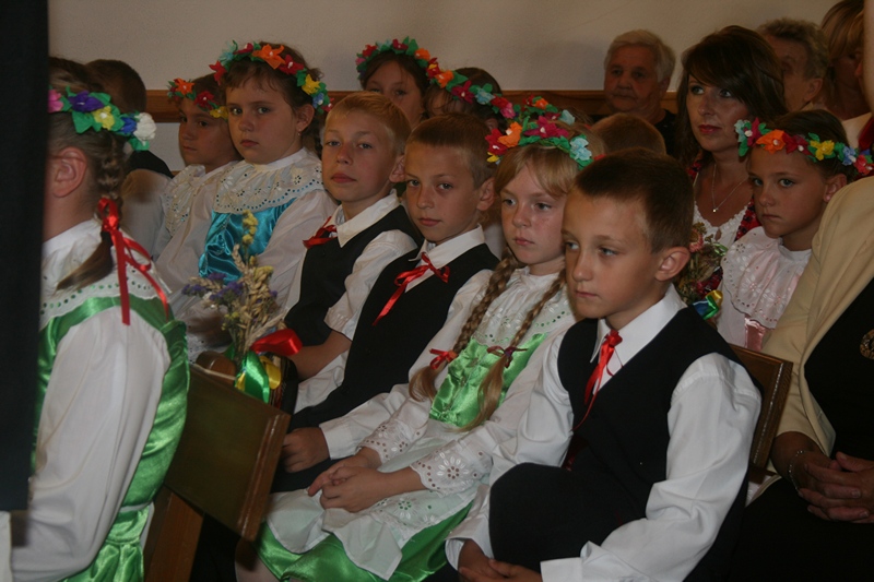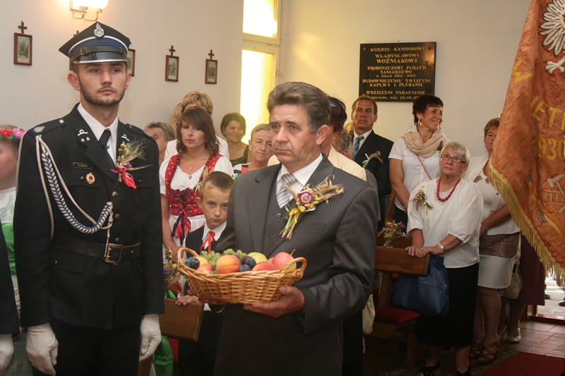 Gminne Święto Plonów rozpoczęła msza święta, będąca dziękczynieniem za zebrane plony. Odprawił ją w miejscowej kaplicy ks. Zenon Kozłowski, proboszcz samarzewskiej parafii. Wymownym akcentem było przekazanie darów – chleba, miodu, wina i owoców przyniesionych przez starostów i gospodarzy dożynek. Po mszy świętej barwny korowód dożynkowy przemaszerował na boisko szkolne. Przygotowana dekoracja oddawała charakter święta.