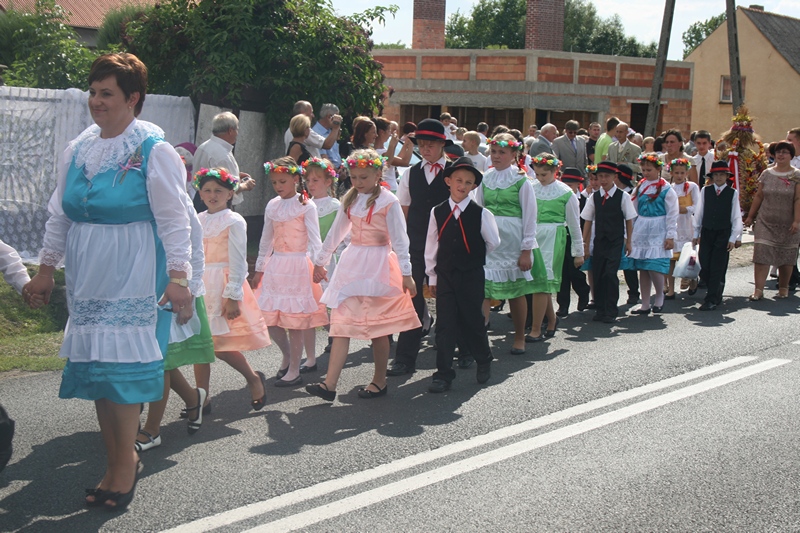 Obrzęd okolicznościowy wykonali uczniowie miejscowej szkoły. Efektowny program swym udziałem wzbogacili sołtysi i władze szkoły. Najważniejszym momentem było przekazanie chleba przez starostów – Marzenę Dobrychłop i Marka Nowickiego. Gospodarze dzielili się nim ze zgromadzoną publicznością. Część artystyczną rozpoczęła Pyzdrska Orkiestra Dęta. Dużą dawkę śmiechu dostarczył Kabaret Klapa. Występ folklorystyczny zapewniła kapela Żegocinianie. Nie zabrakło też przyśpiewek w wykonaniu lokalnych gospodyń. Na scenie rewelacyjny jak zawsze popis wokalny dały bliźniaczki – Justyna i Natalia Defitowskie. Potem przyszedł czas na zabawę taneczną, którą prowadził zespół Exit.