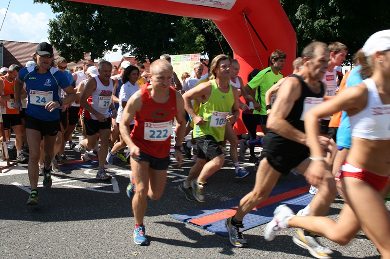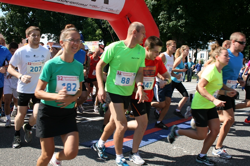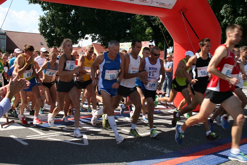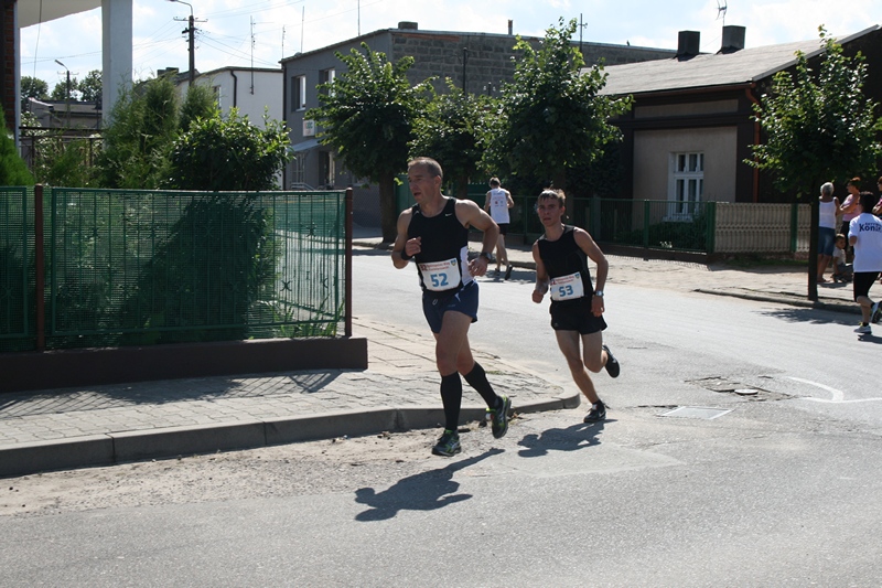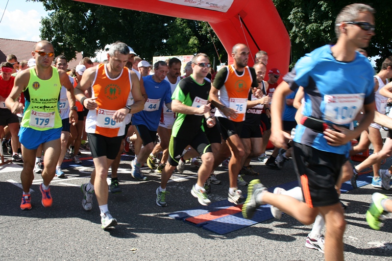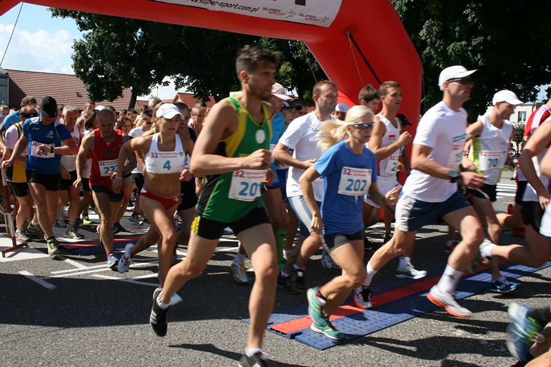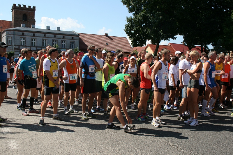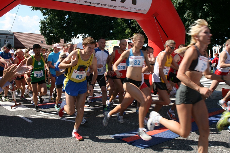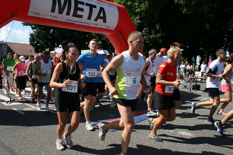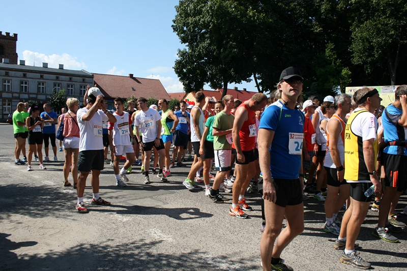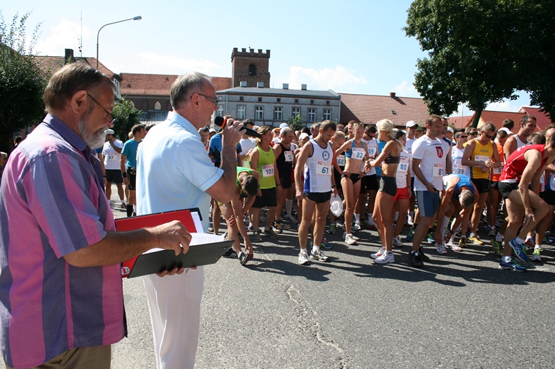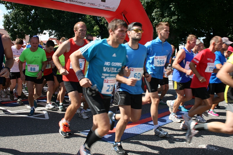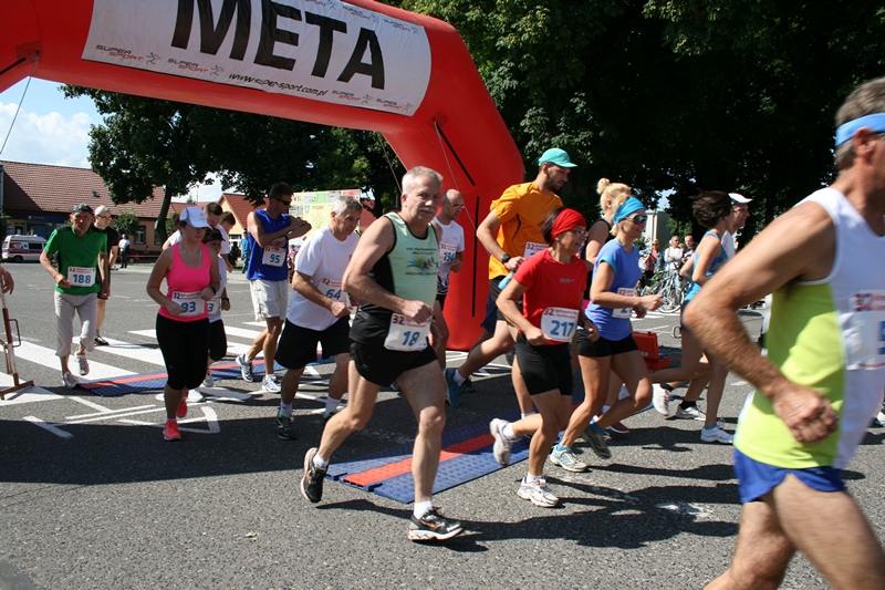 Na godz. 11.00 zaplanowany został Bieg Główny. Niestety rozpoczął się on z półgodzinnym opóźnieniem. Firma Super Sport z Zielonej Góry, zajmująca się elektronicznym pomiarem, miała awarię auta na autostradzie. Sprawa zapisów i wydawania chipów przebiegła jednak sprawnie. Sygnał do startu tradycyjnie już wydał Burmistrz Pyzdr Krzysztof Strużyński. Zawodnicy zwartą grupą biegli aż do osiedla. Chwilę później najlepsi zawodnicy wysunęli się na prowadzenie, pozostawiając resztę daleko w tyle. Mężczyźni mieli do pokonania 10 km, kobiety – 5.