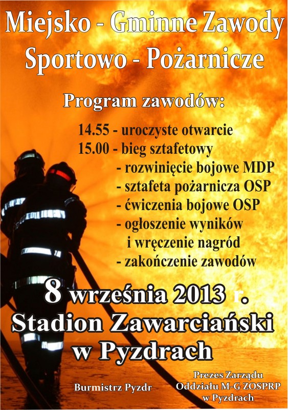 Serdecznie zapraszamy na zawody sportowo - pożarnicze, które odbędą się 8 września na Stadionie Zawarciańskim. Szczegóły w załączeniu.