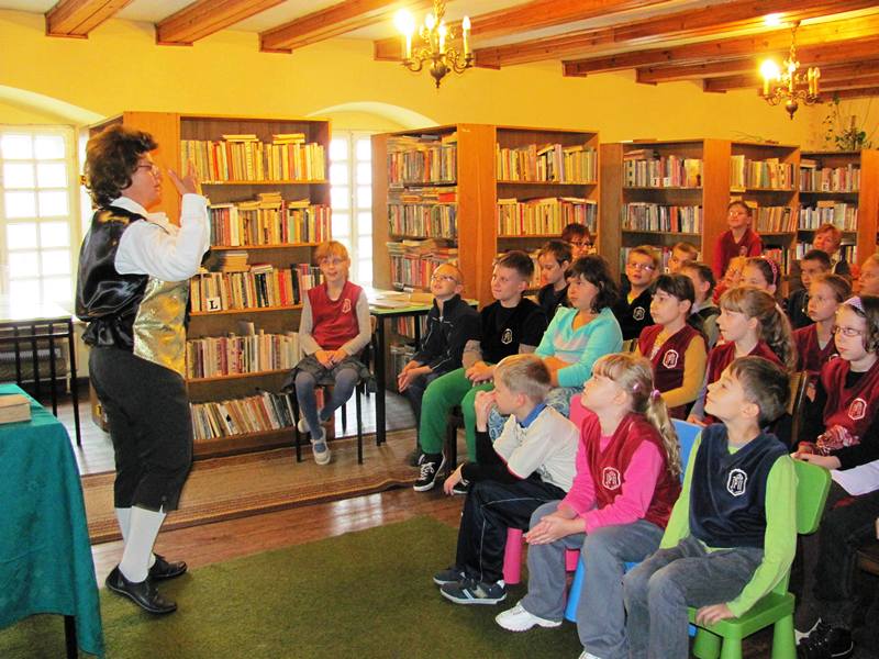 W rolę hrabiego Fredry wcieliła się pani Barbara Sulkowska a bajek ,,Paweł i Gaweł'', ,,Małpa'', ,,Osioł'' i wielu innych wysłuchali uczniowie klas trzecich z Pyzdrskiej Szkoły Podstawowej. Czytaniu towarzyszyły zabawy, zgadywanki i dyskusje. Dzieci pokrótce poznały też komedie Aleksandra Fredry, poznały kilka faktów z jego życia i czasów jemu współczesnych.
