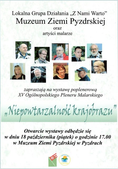 XV Ogólnopolski plener malarski „Niepowtarzalność krajobrazu” zorganizowany po raz drugi przez LGD „Z Nami Warto” jest kontynuacją pyzdrskich plenerów organizowanych przez Muzeum Ziemi Pyzdrskiej. Dodatkowo LGD zorganizowała w czasie pleneru warsztaty malarskie dla malarzy amatorów, których wykładowcą był profesor Uniwersytetu Artystycznego w Poznaniu – Sławomir Kuszczak. Na wernisażu swoje prace wystawiają: Janusz Debis, Jakub Godziszewski, Bogusław Jagiełło, Sławomir Kuszczak, Juliusz Marweg, Franciszek Maśluszczak, Stanisław Mazuś, Irena Smoleń, Renata Wojnarowicz i Anna Szymanek – komisarz pleneru.