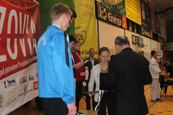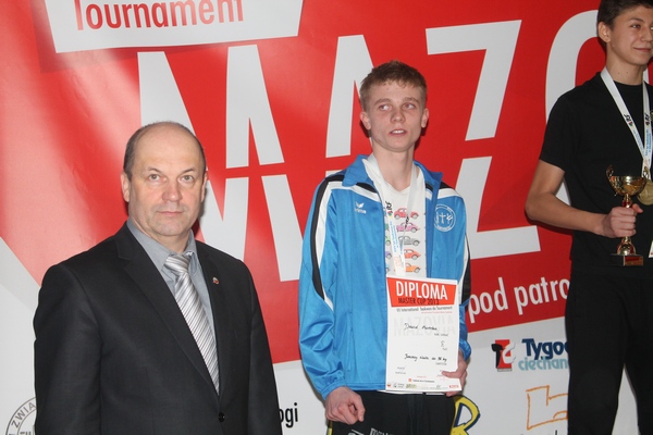 Gimnazjum reprezentował też Dawid Tabert, który próbował swoich sił w biegu na 60 metrów . Dawid z wynikiem 7,82 nie zdołał zakwalifikować się do ścisłego finału. Damian rywalizował w konkurencji skoku wzwyż. W pięknym stylu pokonał poprzeczkę na wysokości 165 cm zdobywając srebrny medal mistrzostw.