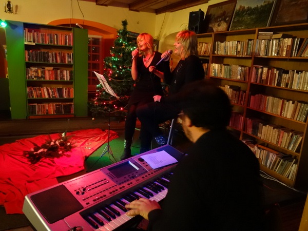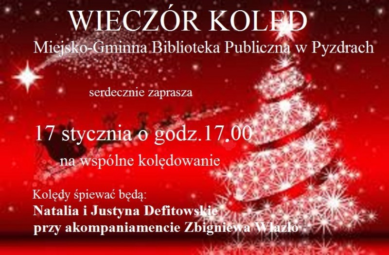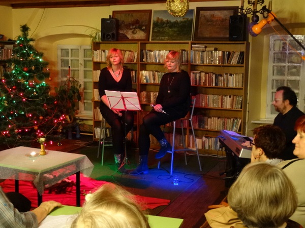 W piątkowe popołudnie w bibliotece panował nastrój świąteczny. W czytelni Pyzdrskiej Biblioteki odbył się koncert kolęd i pastorałek w wykonaniu Natalii i Justyny Defitowskich przy akompaniamencie Zbigniewa Wlazło, który prowadził też konferansjerkę.