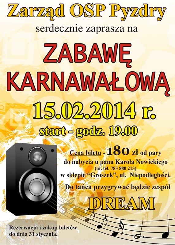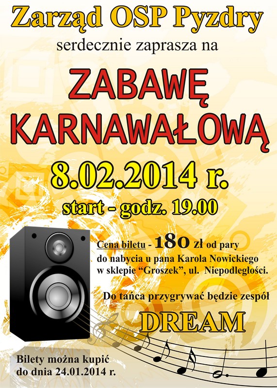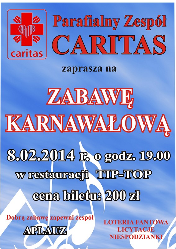 Zapraszamy na bale karnawałowe organizowane przez Caritas i OSP Pyzdry.