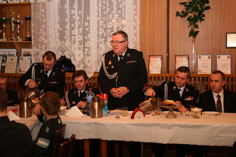 Ochotnicza Straż Pożarna liczy 44 członków zwyczajnych, w tym 3 kobiety, 5 członków honorowych i 13 w drużynie pożarniczej. W minionym roku uczestniczyła 8 razy w akcjach ratowniczych, 5 razy w gaszeniu pożarów i w 3 innych zdarzeniach na terenie gminy Pyzdry. Jednostka otrzymała samochód ratowniczo – gaśniczy typu ciężkiego Star M78, aparat powietrzny, sprzęt ratowniczy i aparat prądotwórczy z Komendy Powiatowej Państwowej Straży Pożarnej we Wrześni oraz samochód typu lekkiego Mercedes z OSP Pyzdry. Ze składek członkowskich i darowizn jak i otrzymanych dotacji z Urzędu Miejskiego (6.392,00 zł) i Zarządu Wojewódzkiego Państwowej Straży Pożarnej w Poznaniu (4.300,00 zł) zakupiono sprzęt ratowniczo – gaśniczy, umundurowanie, zorganizowano turniej tenisa stołowego i imprezy dla społeczności lokalnej. Zarząd OSP jednogłośnie otrzymał absolutorium za miniony rok sprawozdawczy. Kazimierz Szablewski w imieniu wszystkich strażaków podziękował władzom gminnym i powiatowym za cenny i niezbędny sprzęt, który pozwoli jednostce być bardziej operatywną przy zwalczaniu różnych zdarzeń. Na rok 2014 zaplanowano zakup dwóch aparatów oddechowych, wymianę okien i drzwi w remizie strażackiej oraz remont garażu. Po części oficjalnej zgromadzona brać strażacka i zaproszeni goście połamali się opłatkiem życząc sobie tylu powrotów z akcji co wyjazdów.