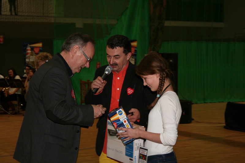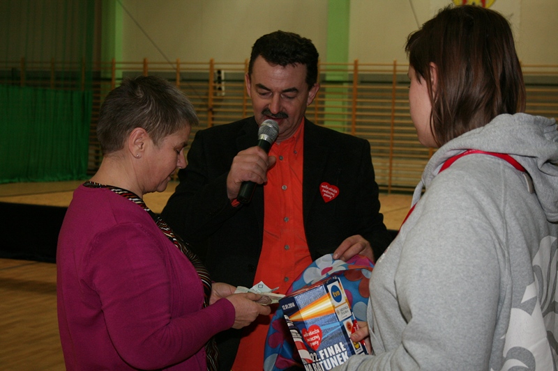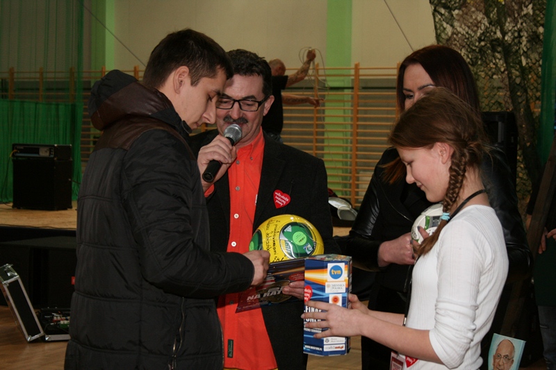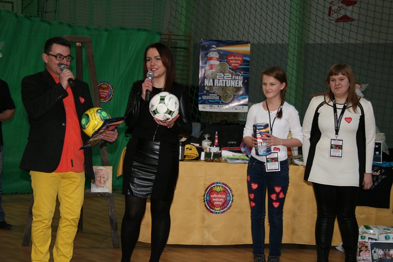 Tradycyjnie od wczesnych godzin rannych kwestowali wolontariusze. Do naszego sztabu zgłosili się bez namawiania. Chcieli pomóc. Przejść obojętnie obok nich nie można było, co zaprocentowało zebraniem około 5 tys. zł. Do kwoty tej doszła ta uzyskana ze sprzedaży gadżetów i różnych przedmiotów, jakie CKSiP otrzymało od lokalnych firm, instytucji i osób prywatnych. Emocjonująca licytacja była przerywnikiem między występami i pokazami, odbywającymi się w czasie imprezy towarzyszącej. Pod młotek szły m.in. piłki z autografami znanych piłkarzy, torby i etui na narzędzia, obrazy olejne Papieży, wielkie lustro, dvd, okrągłe bochenki chleba, ubrania i akcesoria wykonane z krawatów oraz książka lokalnej pisarki. Łącznie z licytacji uzyskano kwotę 2 tys. 455 zł. Dla osób biorących w niej udział przedmioty nie miały znaczenia. Ważniejsze było to by zebrać jak najwięcej pieniędzy na zakup specjalistycznego sprzętu dla dziecięcej medycyny ratunkowej i godnej opieki medycznej seniorów.