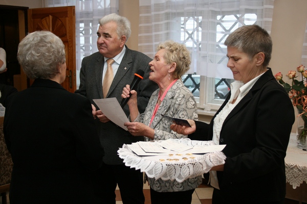 Miłym akcentem było więc wyróżnienie tych, którzy szczególnie zasłużyli się dla pyzdrskiego związku. Uchwałą Zarządu Głównego – Złotą Odznakę Honorową otrzymała Zofia Nowak i Stanisława Paszak. Odznakę przyznano też: Zdzisławie Drozd, Halinie Jankowskiej i Bogumile Nowińskiej (panie ze względów zdrowotnych nie były obecne na spotkaniu). Henryk Zywert, przewodniczący Zarządu Okręgowego w Poznaniu, złotą odznakę wręczył też – Krzysztofowi Strużyńskiemu, burmistrzowi Pyzdr, Elżbiecie Kłossowskiej, przewodniczącej rady miejskiej, Robertowi Balickiemu, radnemu powiatowemu i Mirosławowi Balickiemu, przewodniczącemu Zarządu Miasta Osiedla. Wyróżnieni nie kryli zaskoczenia, bo jak stwierdzili praca i pomoc seniorom to dla nich przyjemność.
