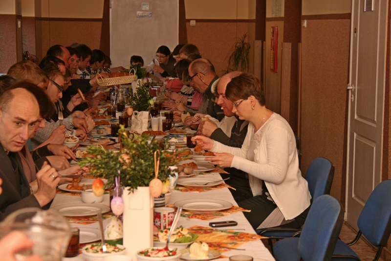 Atmosfera była bardzo przyjazna. Krótkie pogawędki, kosztowanie wielkanocnych specjałów kulinarnych oraz ciepły uśmiech na twarzy wychowanków był dowodem na to, że takie uroczystości świetnie integrują wszystkich. Mogą poczuć się jak jedna wielka rodzina.