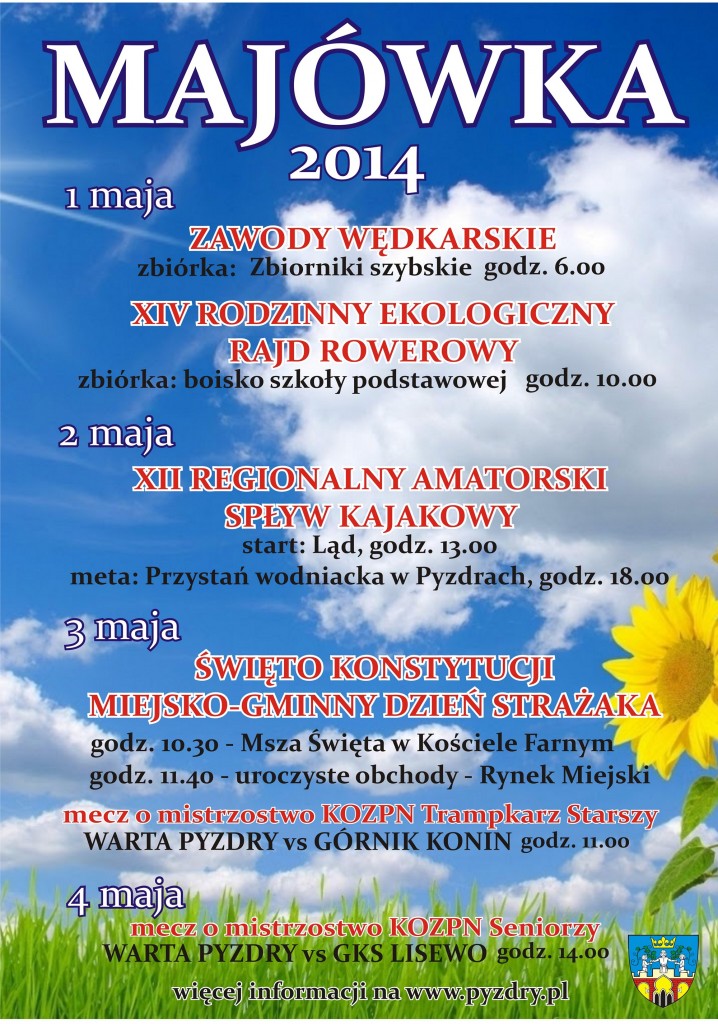 Towarzystwo Turystyki Wodnej „PERKOZ” zaprasza do udziału w XII Regionalnym Amatorskim Spływie Kajakowym po Warcie, na trasie Ląd – Pyzdry, otwierającym sezon wodniacki 2014. Spływ odbędzie się 2 maja.