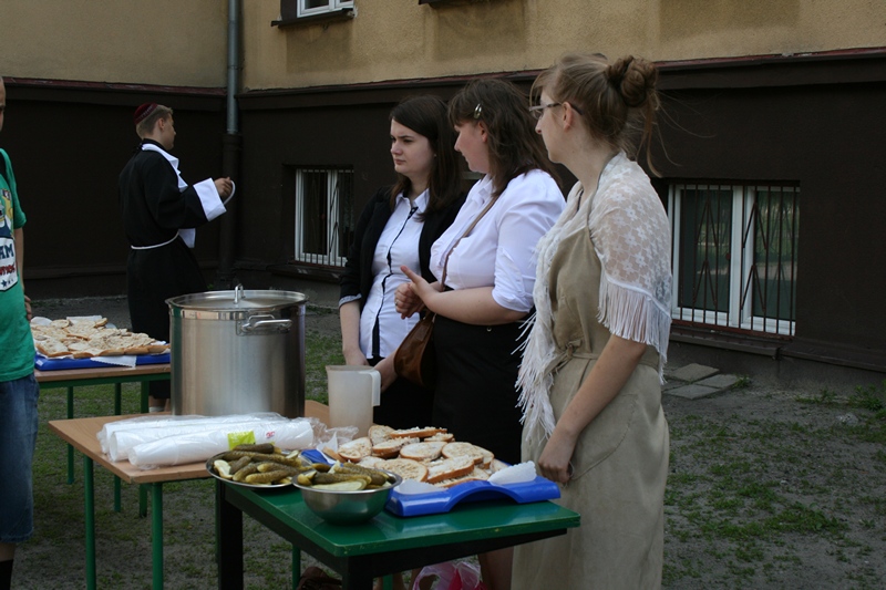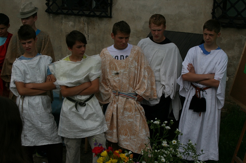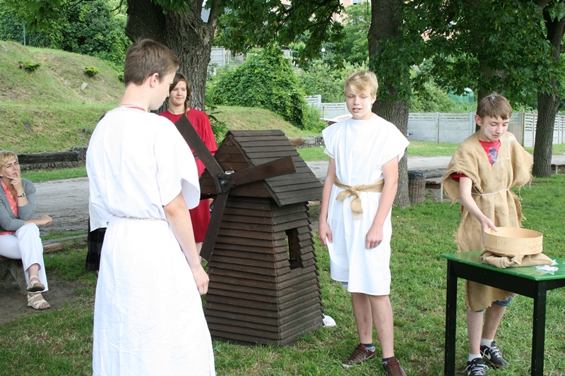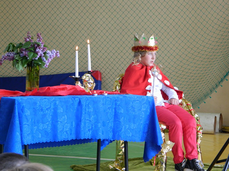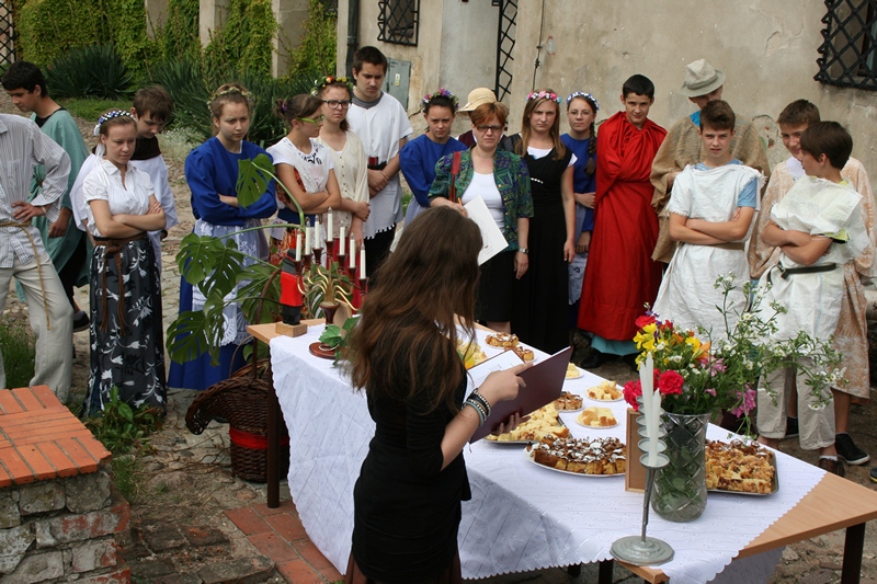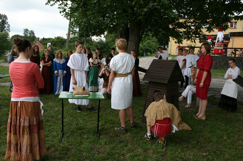 W ramach obchodów Dnia Patrona, każda klasa Gimnazjum przygotowała prezentację ukazującą życie ówczesnych mieszkańców. Młodzież prezentowała m.in. kram na jarmarku, budowę zamku, młyny i wiatraki w Pyzdrach, Kościoły, czy pieczęć królewską. Stoiska ulokowane były w różnych punktach miasta, a zadaniem jury było wyłonienie klasy, która najlepiej przedstawiła temat. A, że zadanie było bardzo trudne, postanowiono dać pierwszą nagrodę dwóm klasom: I c za „Rolę rzeki dla mieszkańców dawniej” i II a za „Wiec”. Drugie miejsce zdobyła klasa I a za "Kram na jarmarku", a trzecie - klasa III a za "Polowanie w borach". Zwycięzcy otrzymali denary na iście królewską ucztę.