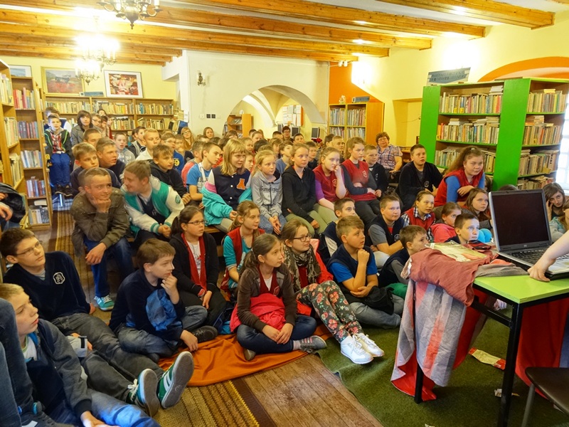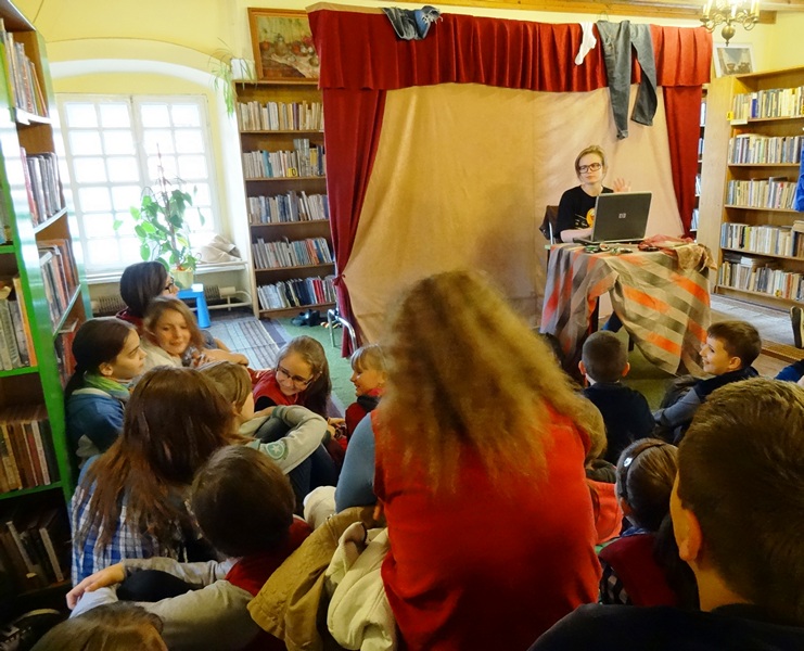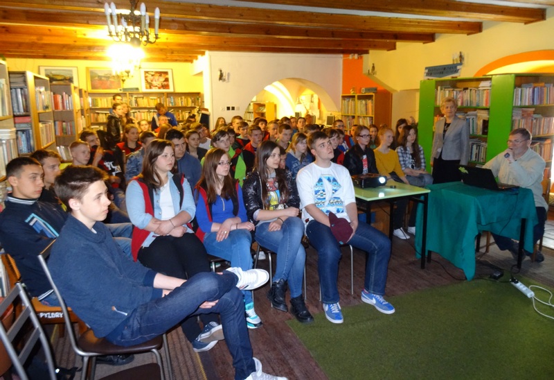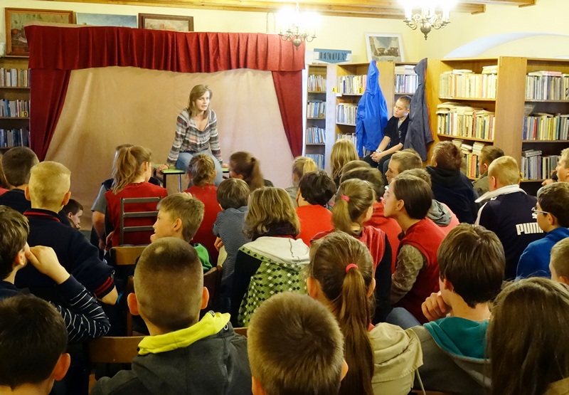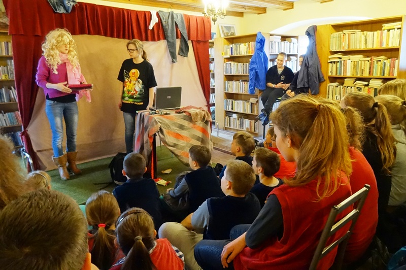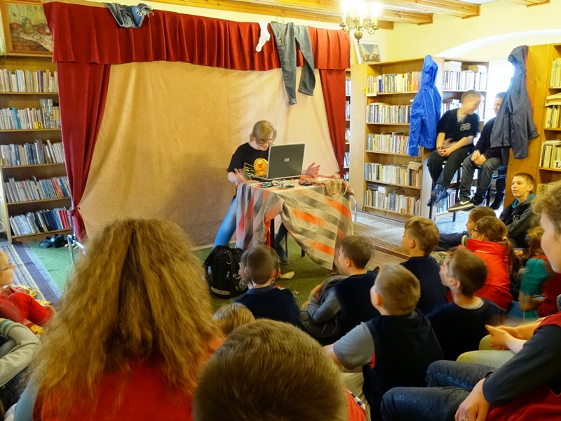 W czwartek,10 kwietnia pyzdrską bibliotekę odwiedziło ponad 110 osób, a byli to uczniowie klas V i VI z miejscowej szkoły podstawowej wraz z opiekunami. Wszystko to za sprawą wystawianego przez Teatr Profilaktyczno-Edukacyjny dla Dzieci i Młodzieży „Moralitet” z Krakowa spektaklu pt. ,,On-line’’.