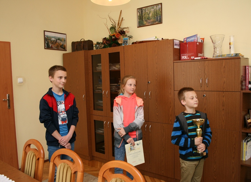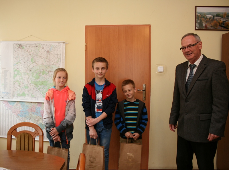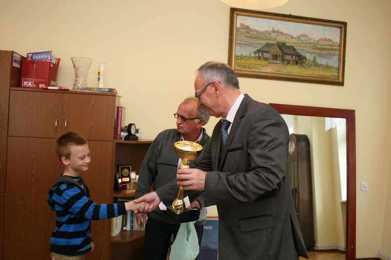 Burmistrz w podziękowaniu za sukces wręczył młodym zawodnikom upominki oraz zaprosił na herbatę i miłą pogawędkę.