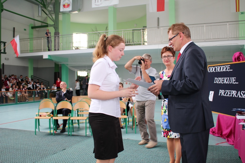 W sali widowiskowo - sportowej odbyła się uroczysta akademia, podczas której pożegnano uczniów klas trzecich. W trakcie uroczystości Dyrektor Zespołu Roman Dreżewski wręczył nagrody dla najbardziej zasłużonych oraz świadectwa z wyróżnieniem. Za wybitne osiągnięcia kilka nagród otrzymała Olga Radziejewska, która zdobyła 100% punktów z egzaminu z języka angielskiego, a za zajęcie pierwszego miejsca w projekcie Youngster pojedzie na 9-dniowy obóz językowy do Londynu.