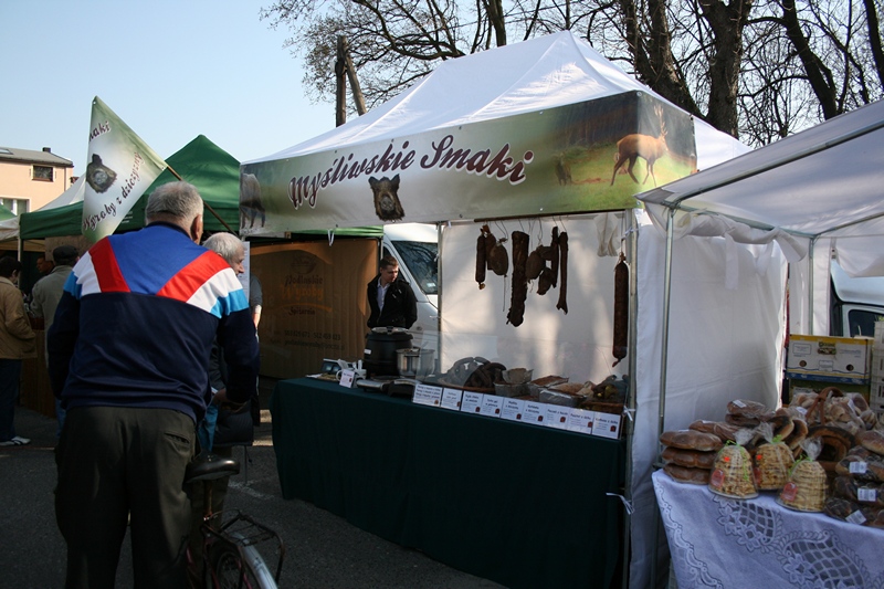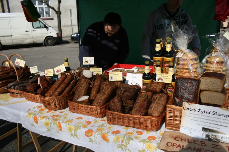 Na rynku swoje wyroby zaprezentowali m.in. twórcy rękodzieła artystycznego, metaloplastycy, twórcy decoupage i inni. Można było wypróbować i zakupić specjałów z całego kraju: naturalne chleby, miody, swojskie wędliny, obwarzanki, oscypki czy też wyroby z dziczyzny. Przedsięwzięcie uświetniał konferansjer zachęcając zwiedzających do odwiedzania stoisk, kupna pięknych serwetek czy ozdób na wielkanocny stół. Panie mogły zakupić przybory kuchenne z łupanego drewna, a panowie rozsmakować się w całej gamie smaków piwa z browaru Koreb. W tle pogrywała muzyka, która umilała czas podczas zwiedzania stoisk. Podziwiać można było prace wykonane przez wychowanków Warsztatów Terapii Zajęciowej w Rudzie Komorskiej. Nie zabrakło również atrakcji dla najmłodszych zwiedzających. Dzieci mogły cieszyć się smakiem waty cukrowej, popcornu czy francuskich gofrów.