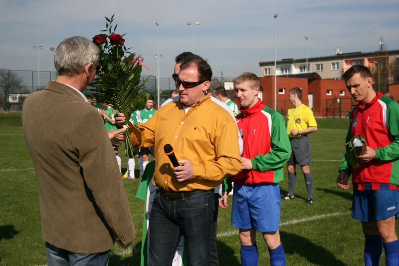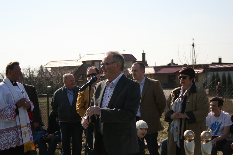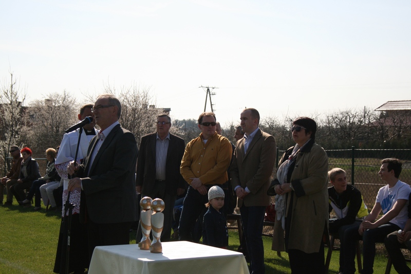 Wszystkich zebranych powitał Burmistrz Pyzdr Krzysztof Strużyński, następnie Ks. Ryszard Kopczyński – Proboszcz Pyzdrskiej Parafii dokonał poświęcenia boiska. Tuż przed rozpoczęciem inaugurującego meczu, Prezes MKS Warta Pyzdry – Robert Balicki w imieniu swoim jak i drużyny seniorów, pożegnał trenera Marka Jakubowskiego, który z przyczyn zdrowotnych musiał zrezygnować ze sprawowanej funkcji.