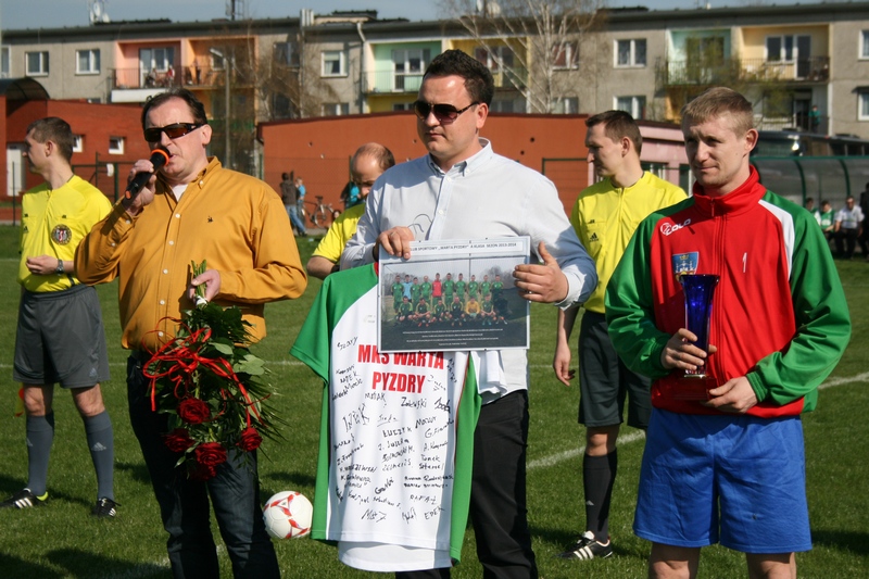 Zwieńczeniem uroczystości był mecz towarzyski pomiędzy MKS Warta Pyzdry a MKS Victoria Września. Wynik 1:13 nie miał znaczenia, gdyż najważniejsze jest to, że Warta doczekała się nowego obiektu, na którym już w najbliższą niedzielę o godz. 13.00, podejmie SOKÓŁ II Kleczew, rozpoczynając rundę wiosenną.
