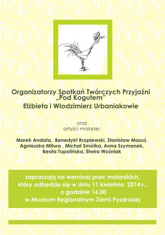 Organizatorzy Spotkań Twórczych Przyjaźni „Pod Kogutem” zaprosili do siebie znamienitych malarzy, którzy wzięli udział w drugim już plenerze malarskim. Komisarzem pleneru ponownie została Anna Szymanek. Nie kryjąc podziwu nad wykonanymi pracami, Elżbieta Urbaniak w ramach podziękowań wręczyła symboliczną różę każdemu z artystów. A byli nimi: Marek Andała, Benedykt Kroplewski, Stanisław Mazuś, Agnieszka Mitura, Michał Smółka, Beata Topolińska, Elwira Woźniak i Anna Szymanek. Malarze nie pozostali dłużni, kierując wiele ciepłych słów w stronę państwa Urbaniaków, dziękując za trud włożony w organizację pleneru.