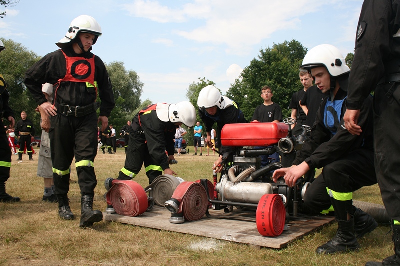 Po oficjalnym rozpoczęciu zawodów przystąpiono do losowania kolejności, w jakiej będą startowały poszczególne drużyny. Jak zawsze najwięcej emocji wywołały ćwiczenie bojowe, w których strażacy mieli za zadanie w jak najszybszym czasie rozwinąć linie gaśnicze, uruchomić motopompę i przewrócić pachołki wodą podaną z dużym ciśnieniem. Konkurencja ta jest bardzo ciekawa z uwagi na nieprzewidywalny przebieg - możliwość awarii sprzętu, czy źle złożone węże. Członkowie Młodzieżowych Drużyn Pożarniczych brali udział w biegu sztafetowym na 400 metrów z przeszkodami oraz w rozwinięciu bojowym.